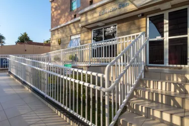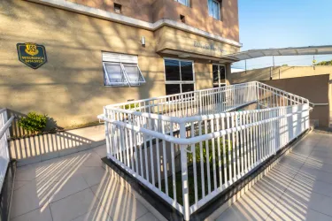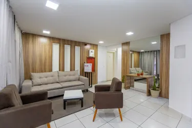 Condomínio com salão de festas, rampa de acessibilidade, espaço gourmet, lavanderia coletiva.