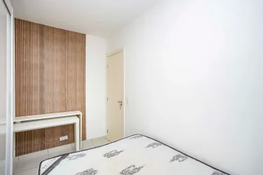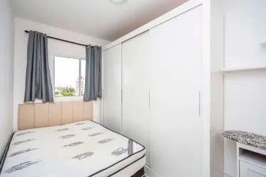 01 Quarto com cama casal box, armário, balcão, cortina blackout;