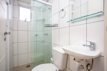01 Banheiro social com box blindex, chuveiro à gás;