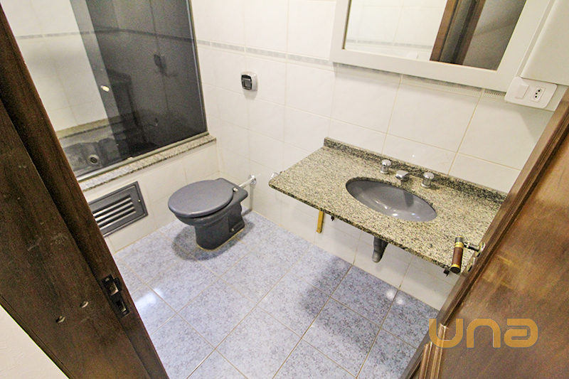 1° Piso com 03 quartos, sendo 01 quarto com sanca em gesso e 01 suíte com box blindex, chuveiro a gás, banheiro social com box blindex;