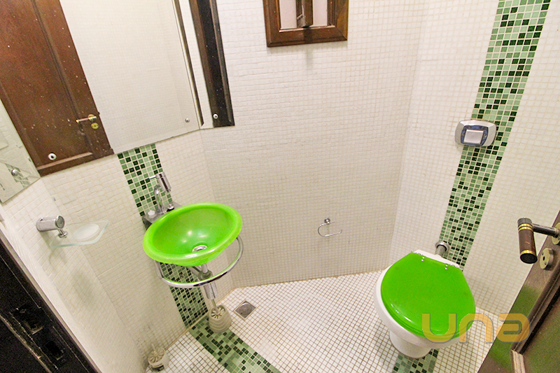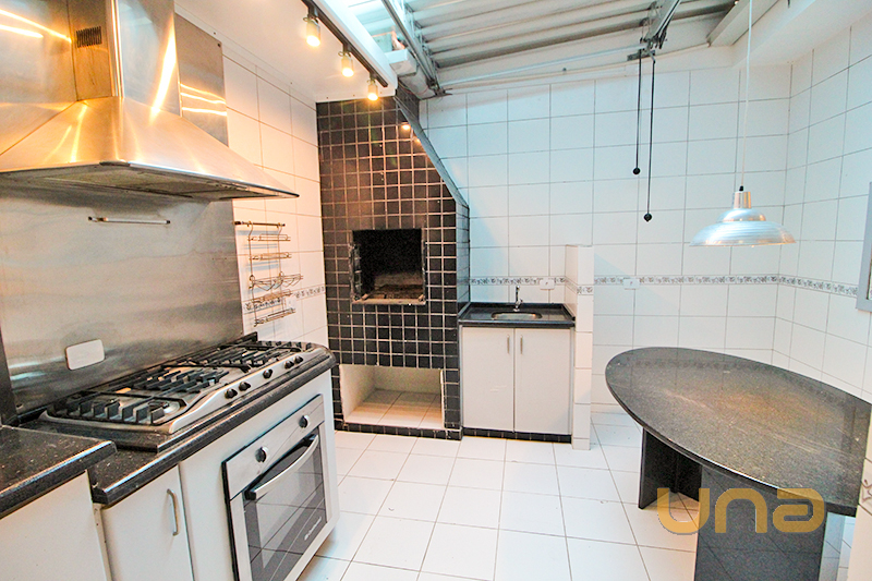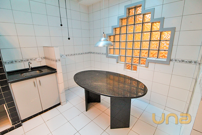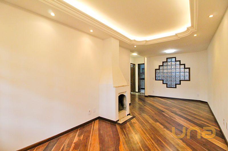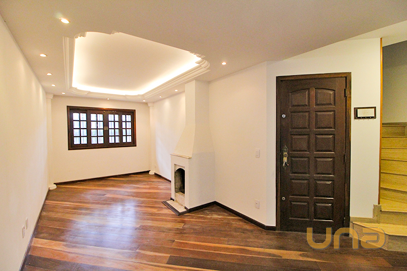 Térreo com 01 sala para 02 ambientes com lareira, piso madeira, sanca em gesso, 01 lavabo, 01 cozinha com armário, pia granito, mesa tampo granito, lavanderia, churrasqueira com teto retrátil;