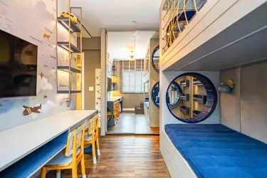Todos os móveis embutidos ficam no apartamento.