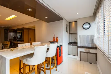 Alguns imóveis oferecem espaço. Outros oferecem uma forma melhor de viver. Este apartamento no Bigorrilho é um convite ao bem viver, onde cada detalhe foi pensado para transformar a rotina em experiência. A área social, com três ambientes integrados, revela amplitude e elegância, enquanto a churrasqueira a carvão cria o ponto de encontro perfeito para grandes momentos. O imóvel ainda conta com lavabo, cozinha planejada, despensa e home office. Na área íntima, três suítes, com destaque para a suíte master com closet, traduzem conforto e privacidade.