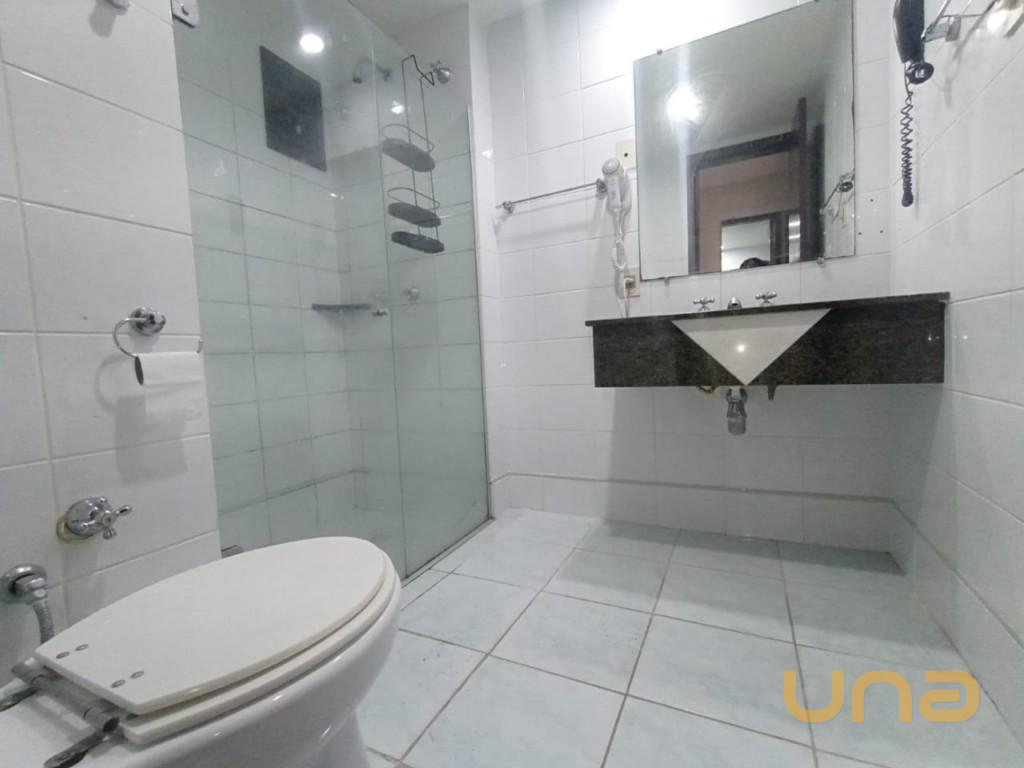 - Dormitório com cama casal e ar condicionado, banheiro com box em vidro.