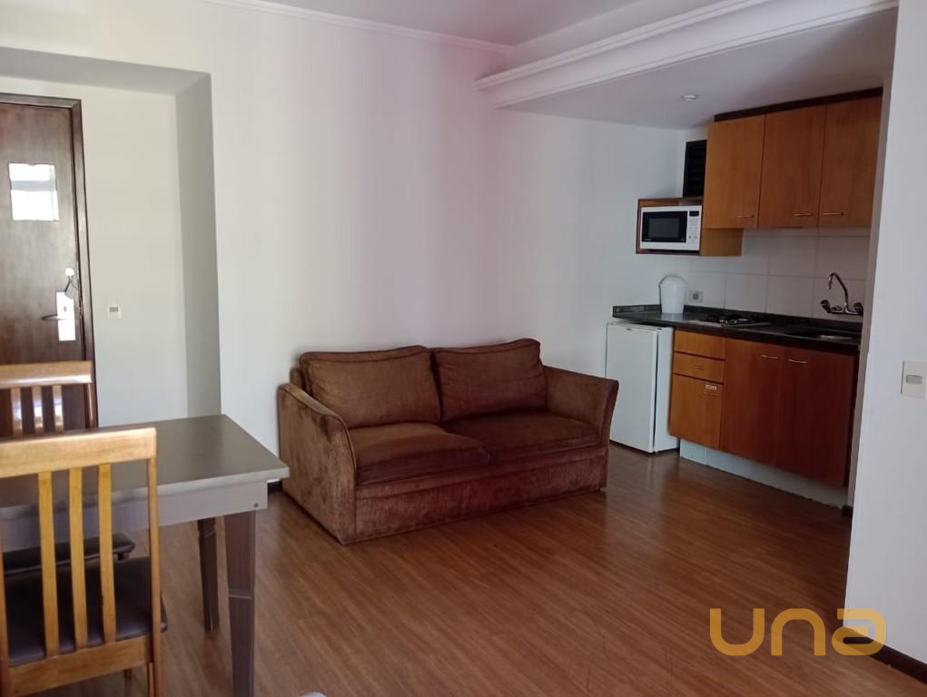 * Sala e cozinha conjugadas, com sofá, mesa e 02 cadeiras, frigobar, microondas e ar condicionado.