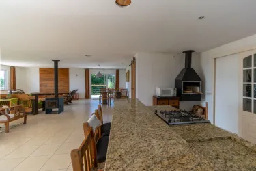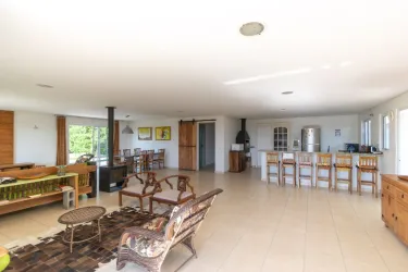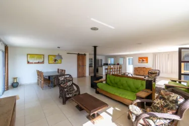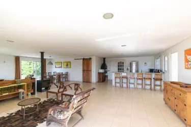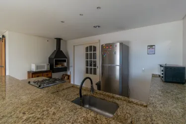 - Espaço integrado em conceito aberto, com sala de estar, sala de jantar e cozinha com churrasqueira