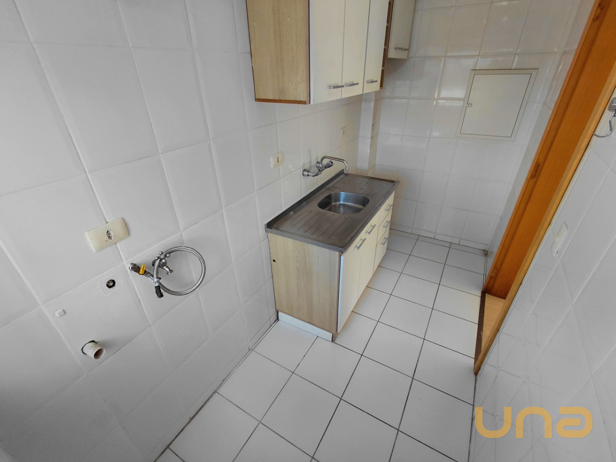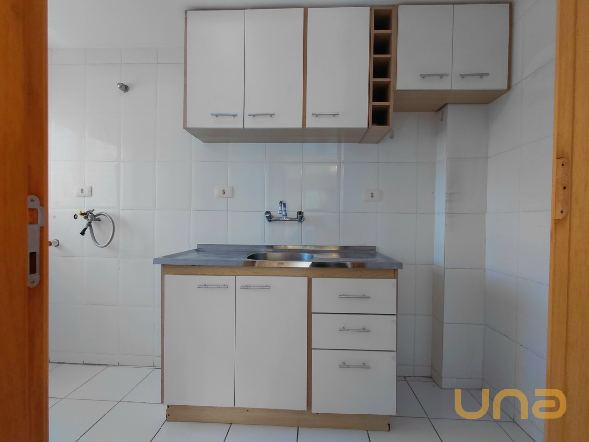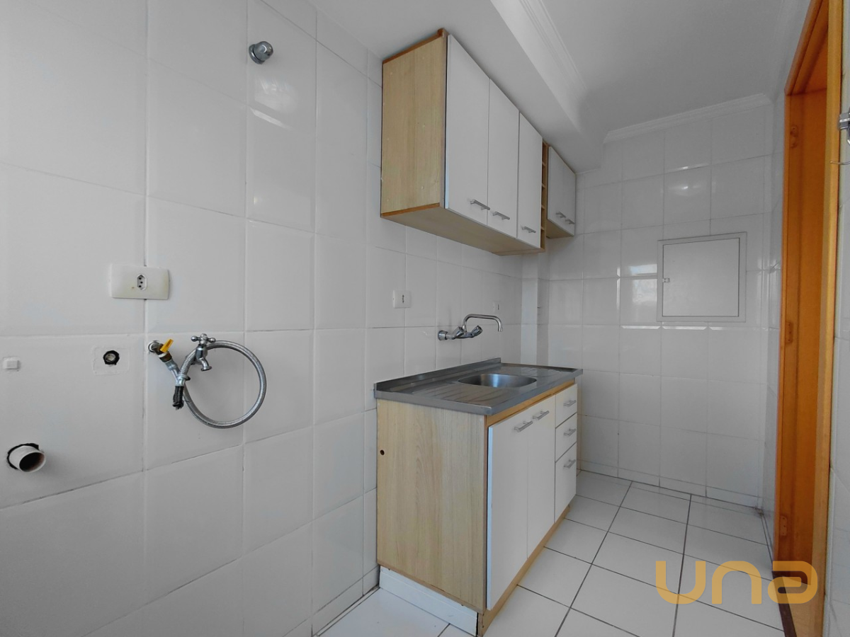 COZINHA COM ARMÁRIO E BALCÃO, ÁREA DE SERVIÇO CONJUGADA.