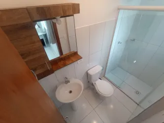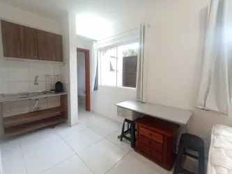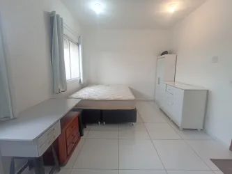 SALA COM CAMA BOX CASAL, ARMÁRIO, ESCRIVANINHA, PRATELEIRA PARA LIVROS, COZINHA CONJUGADA COM ARMÁRIO SUSPENSO, REFRIGERADOR, MICRO ONDAS, BANHEIRO SOCIAL COM BOX , AQUECIMENTO ELÉTRICO, PISO PORCELANATO, PINTURA NOVA.