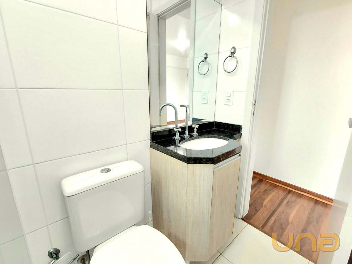 SALA COM SACADA. COZINHA DO TIPO AMERICANA COM ARMÁRIOS, BANCADA E PIA COM TAMPO EM GRANITO E COOKTOP. BANHEIRO COM BALCÃO E BOX EM VIDRO TEMPERADO. IMÓVEL PISO LAMINADO, AQUECIMENTO À GÁS.