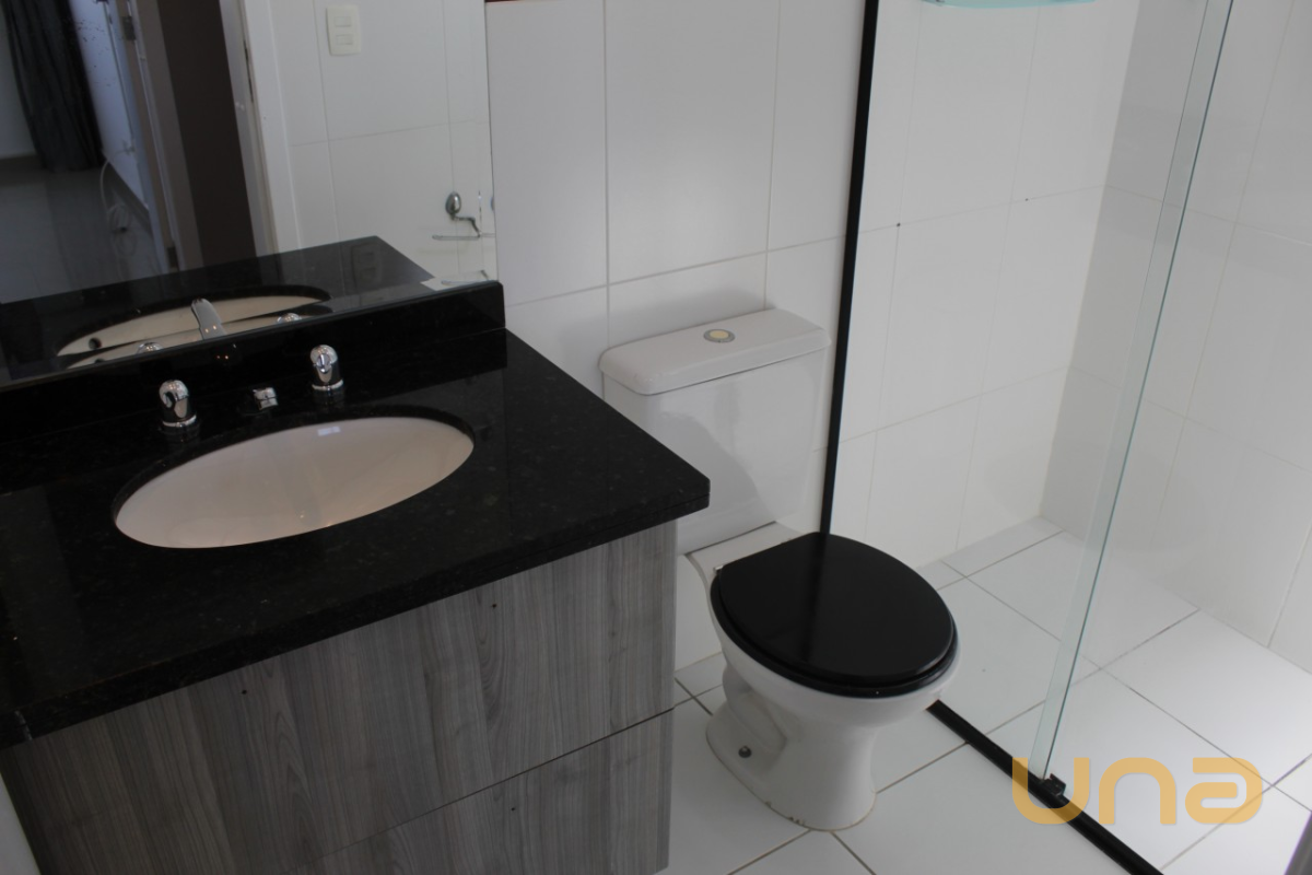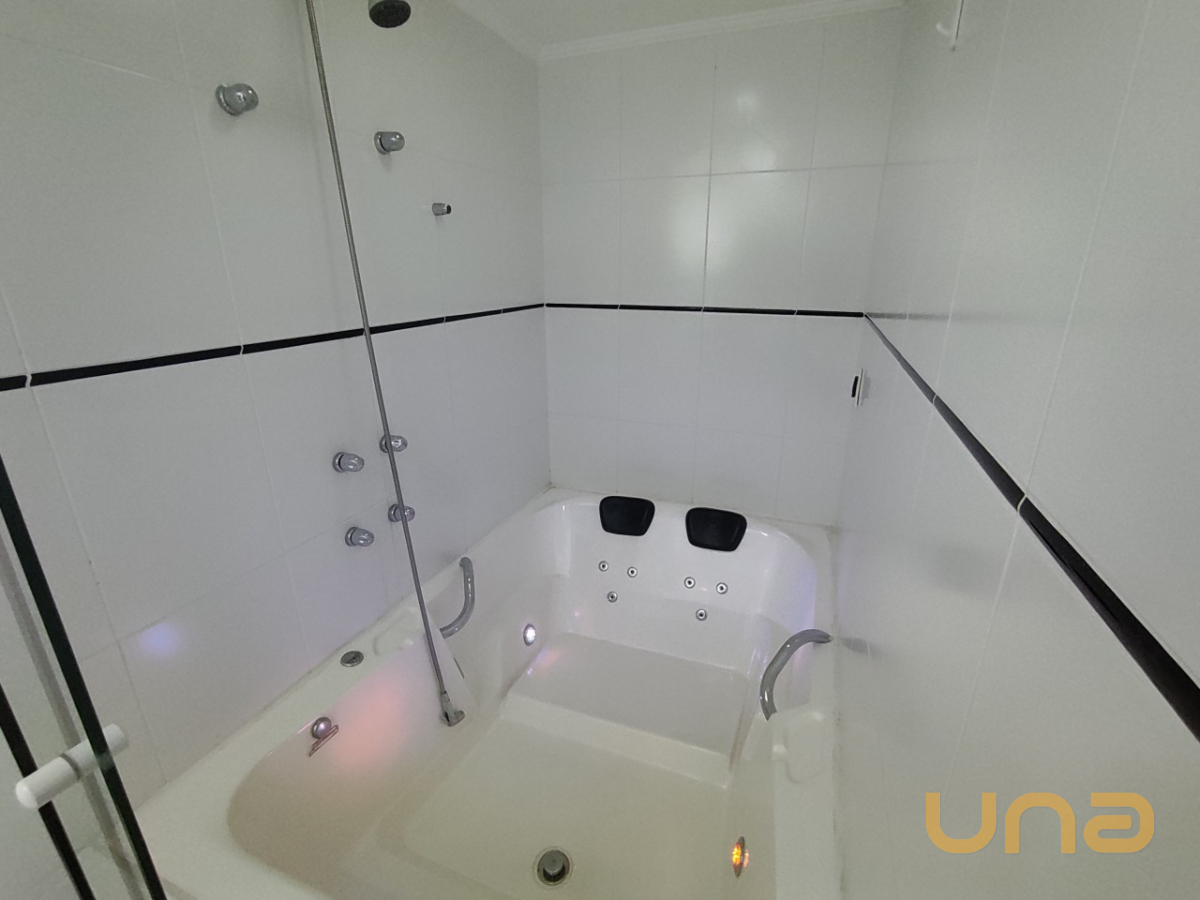 01 BANHEIRO PRIVATIVO COM HIDROMASSAGEM, BALCÃO E ESPELHO, 01 BANHEIRO SOCIAL COM BALCÃO E BOX DE VIDRO;