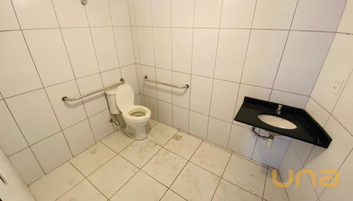SALA AMPLA EM VÃO LIVRE COM 01 BANHEIRO SOCIAL, POSSUI UMA ÁREA DE PARA DEPÓSITO.