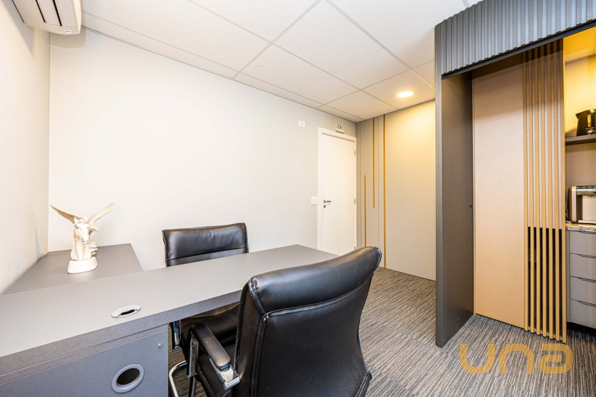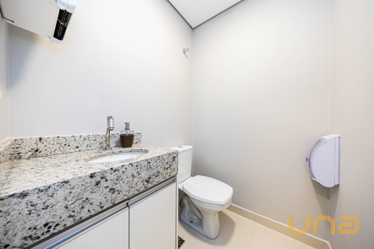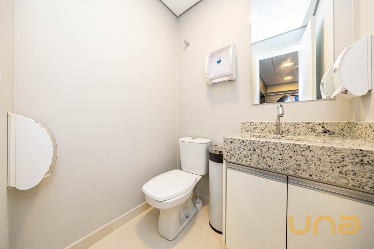 O condomínio THE FIVE - EAST BATEL oferece instalações modernas, incluindo sala de reunião, auditório, recepção e copa.
