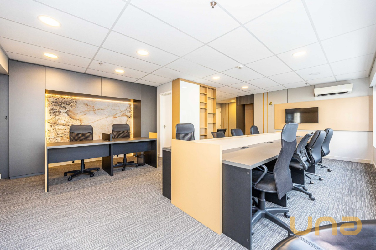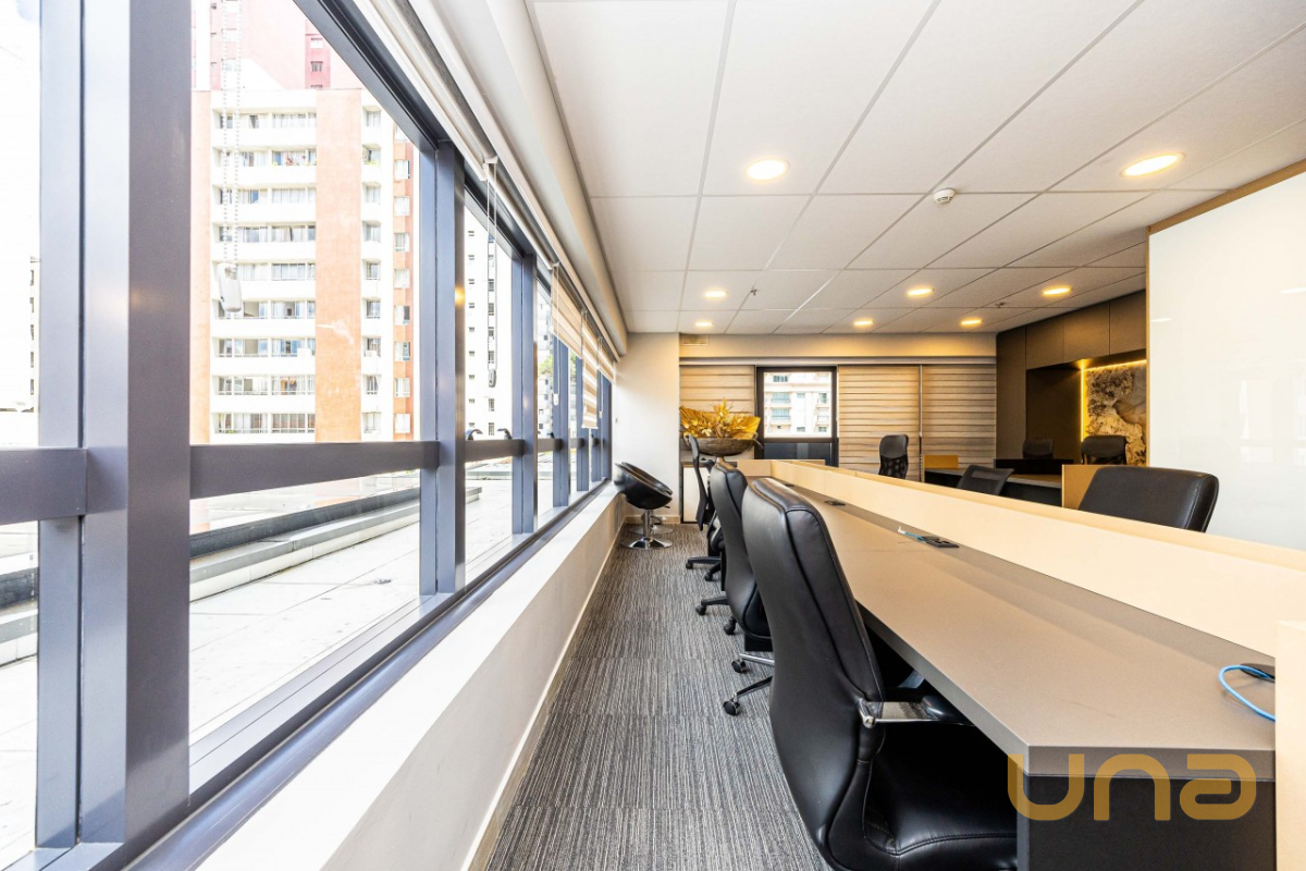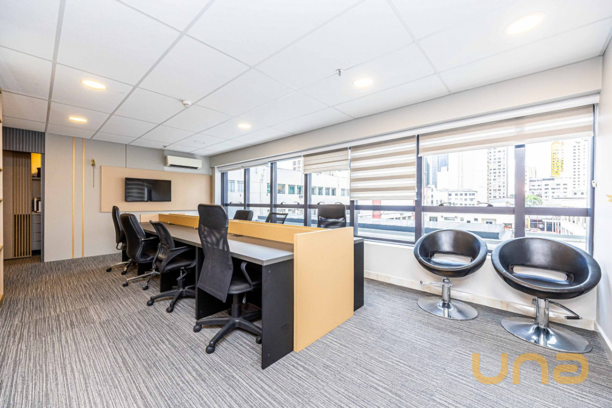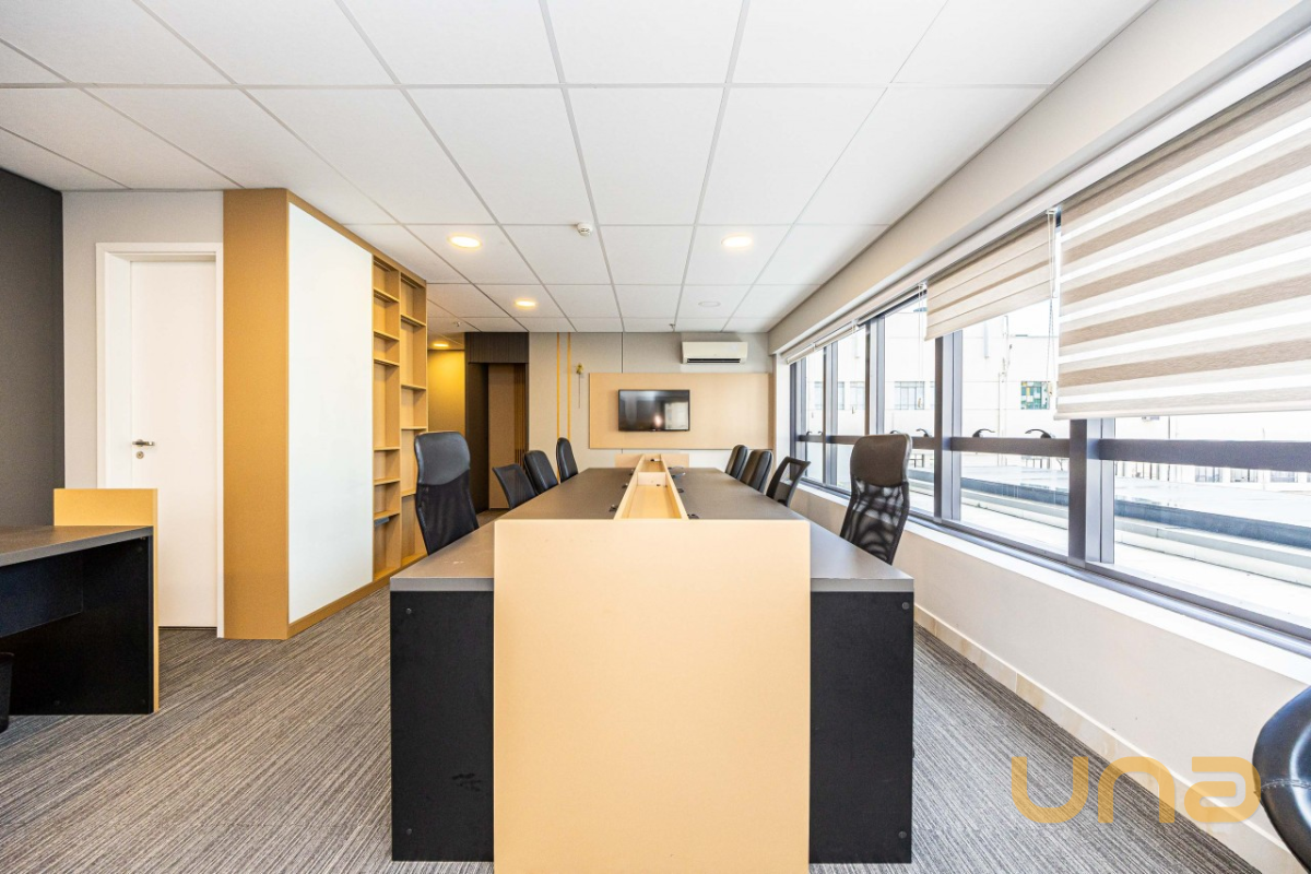 O condomínio THE FIVE - EAST BATEL oferece instalações modernas, incluindo sala de reunião, auditório, recepção e copa.