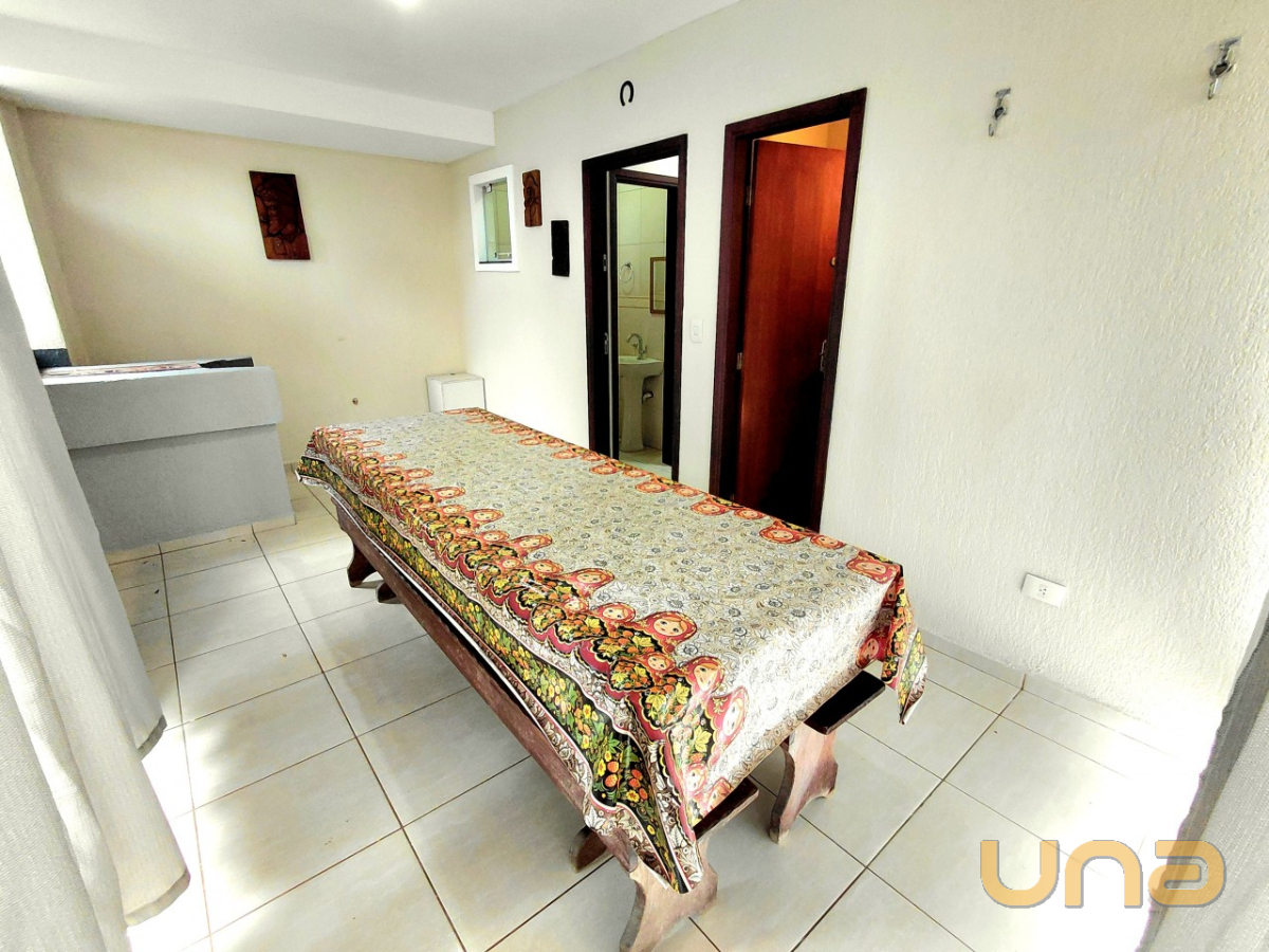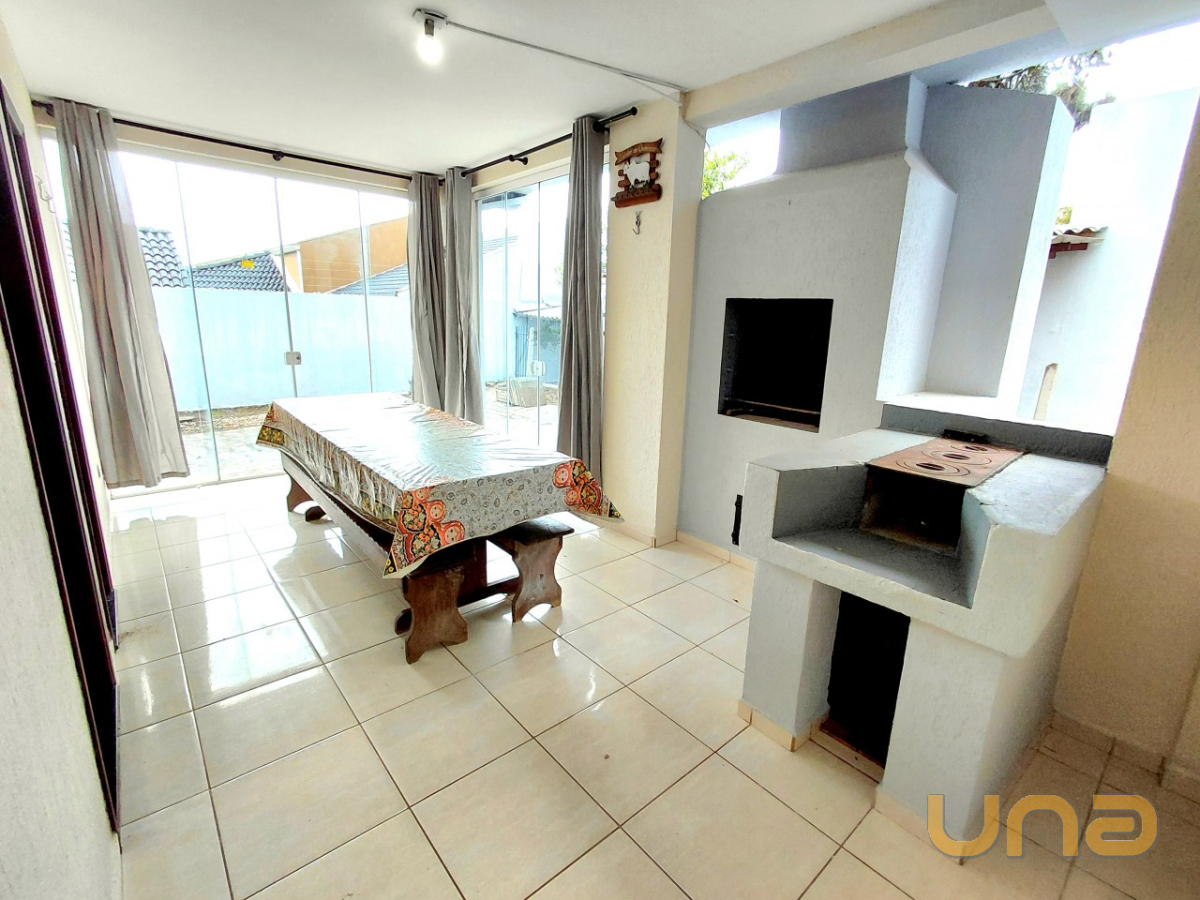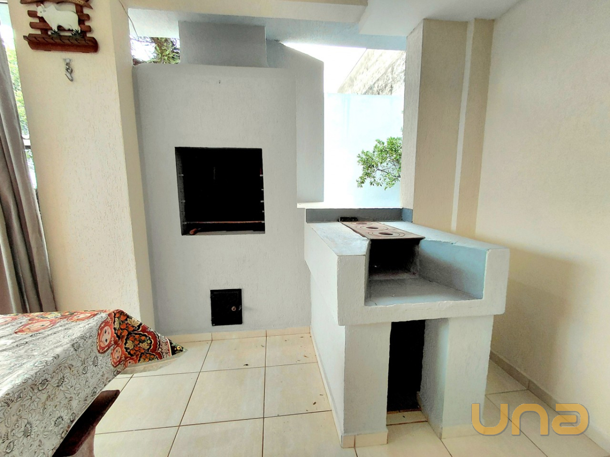SALA DE ESTAR E JANTAR CONJUGADA E LAREIRA, COZINHA COM ARMÁRIOS, FOGÃO, GELADEIRA, LAVANDERIA COM TANQUE, 01 BWC SOCIAL, ÁREA EXTERNA COBERTA E FECHADA COM CHURRASQUEIRA E FOGÃO A LENHA.