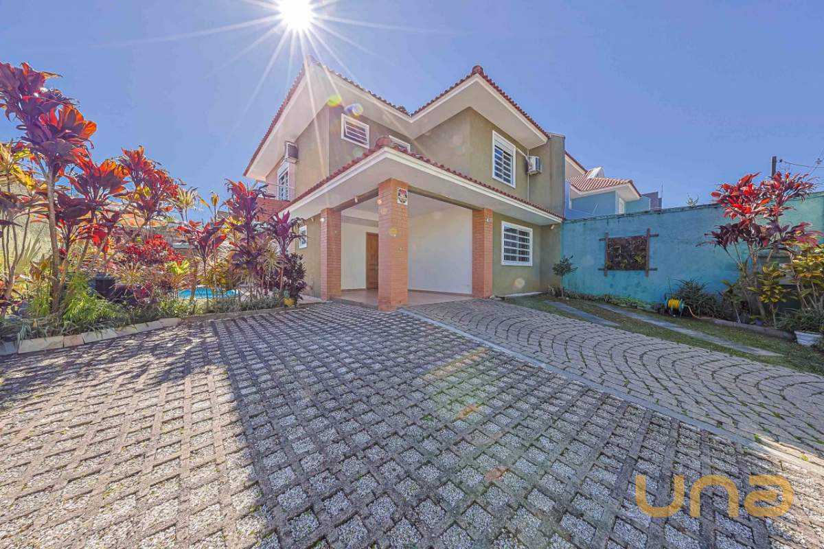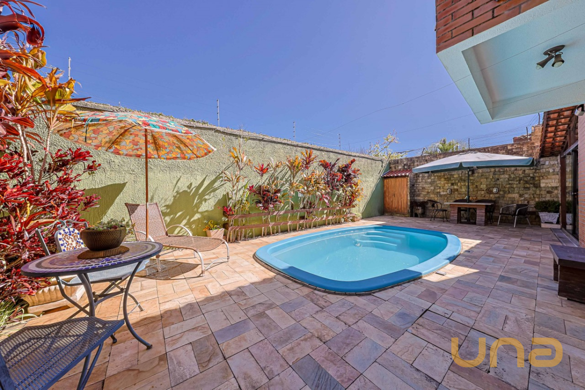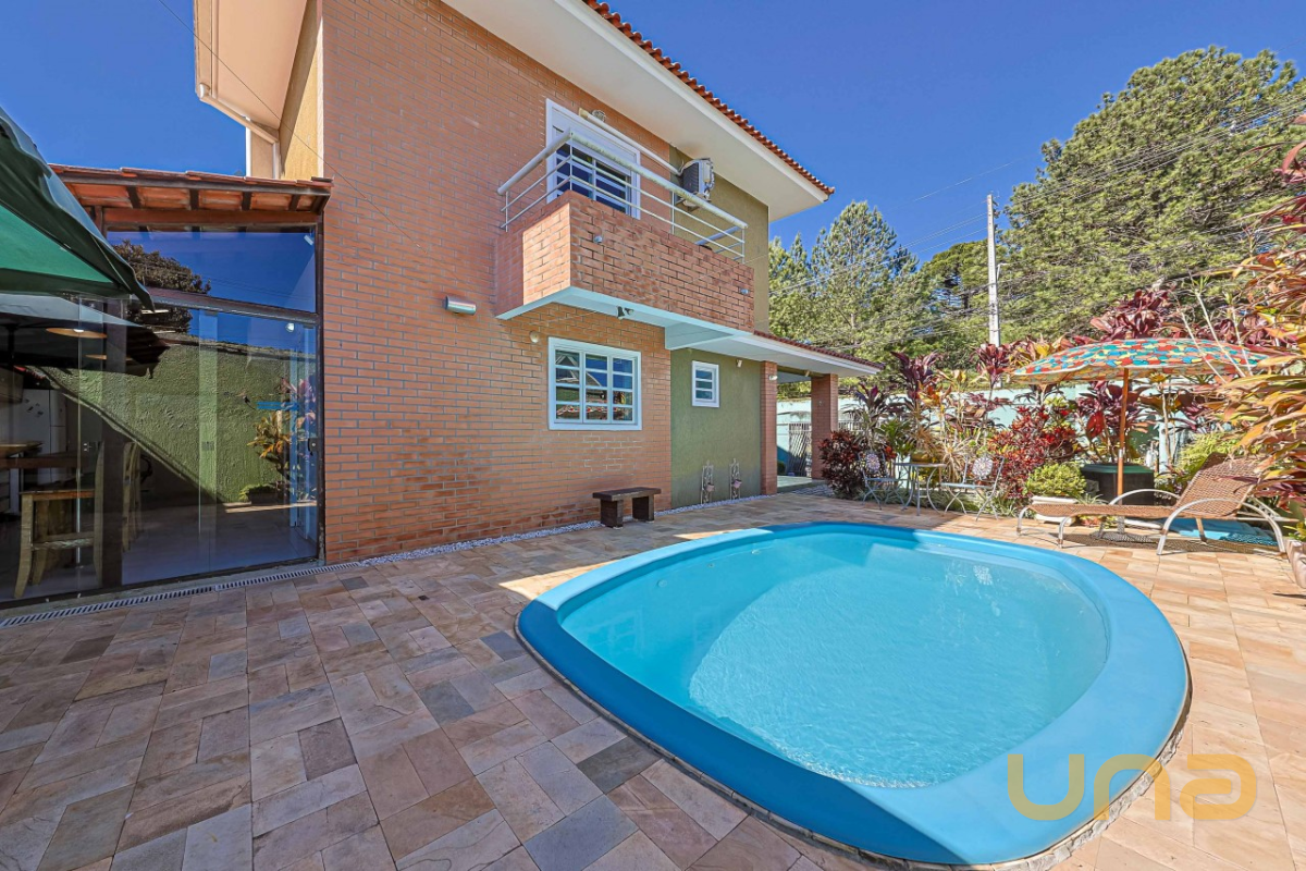 Detalhes: Excelente sobrado de esquina em Santa Felicidade, em uma localização privilegiada, de frente para um jardim, com piscina aquecida e placas solares para captação de energia — uma combinação de conforto, sustentabilidade e sofisticação.