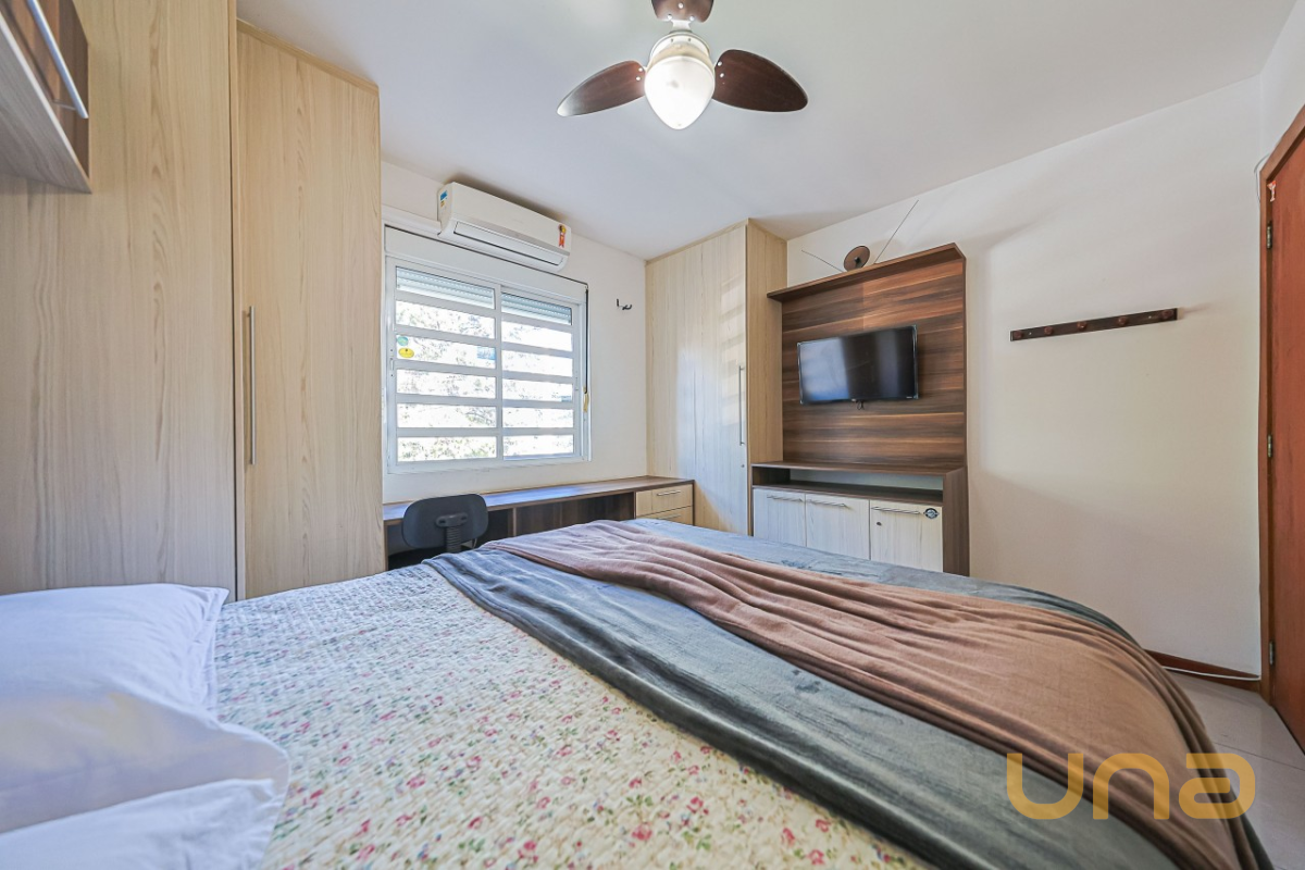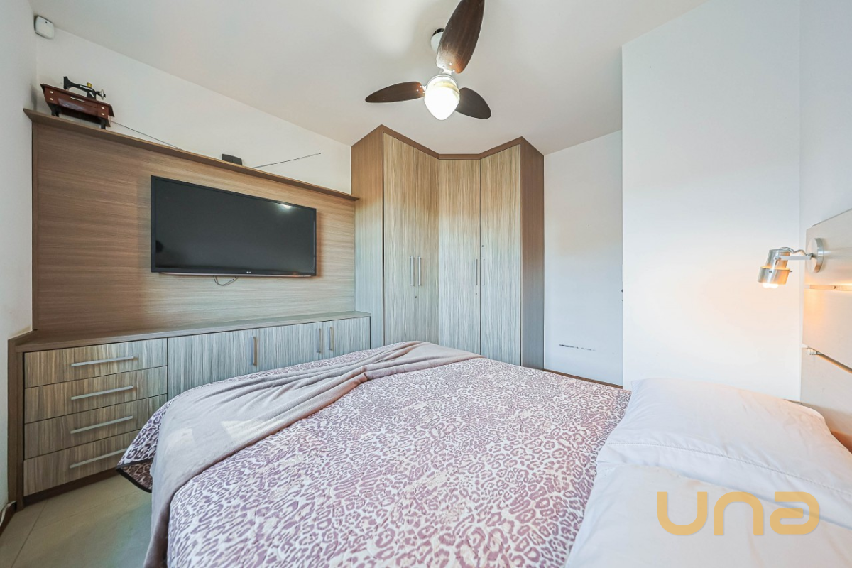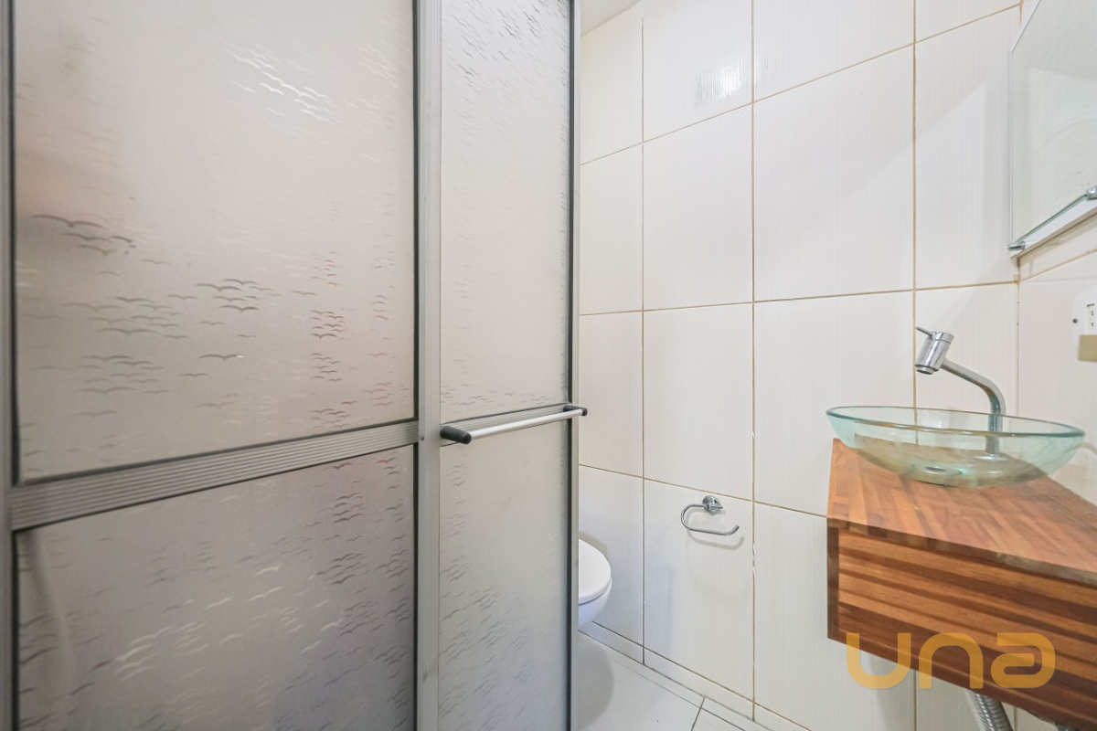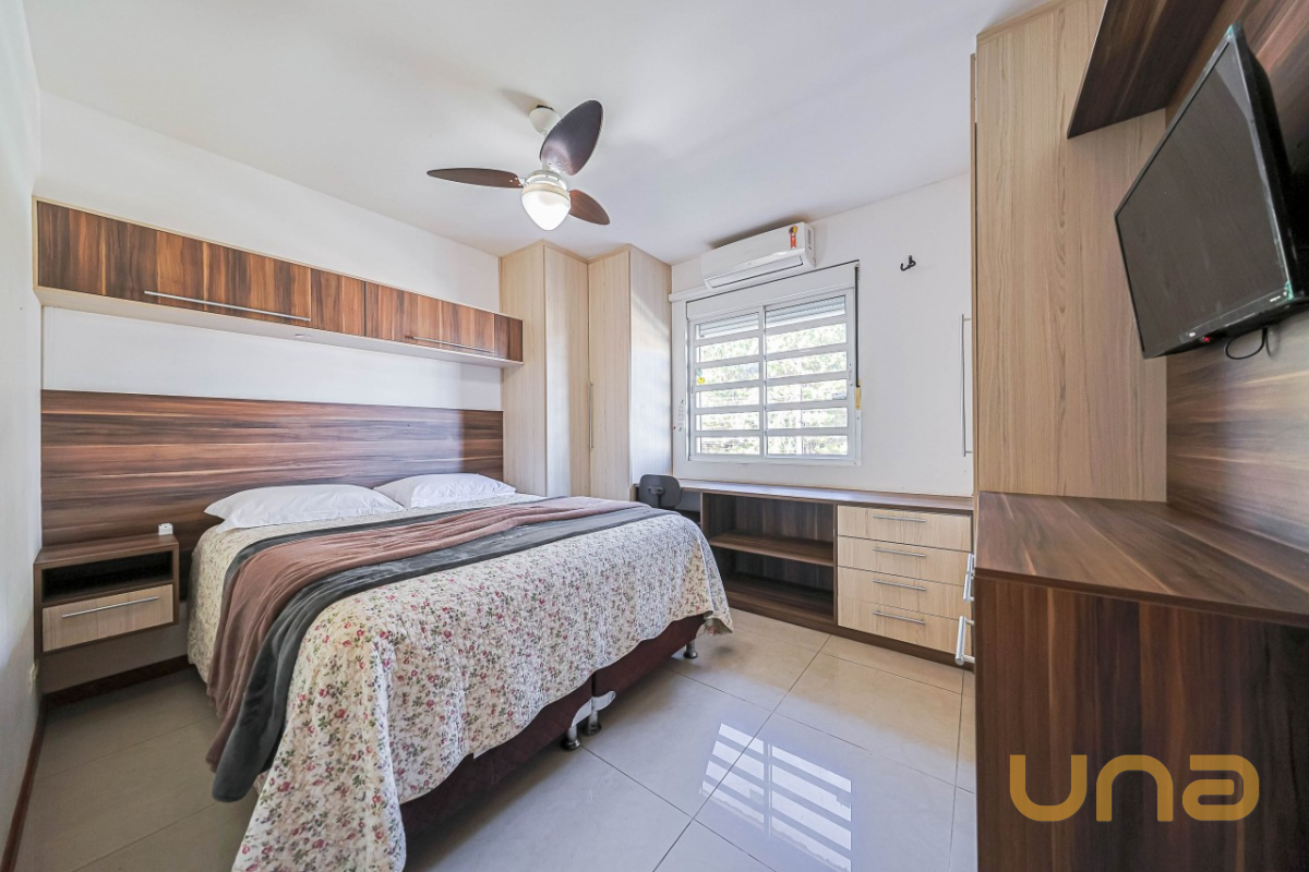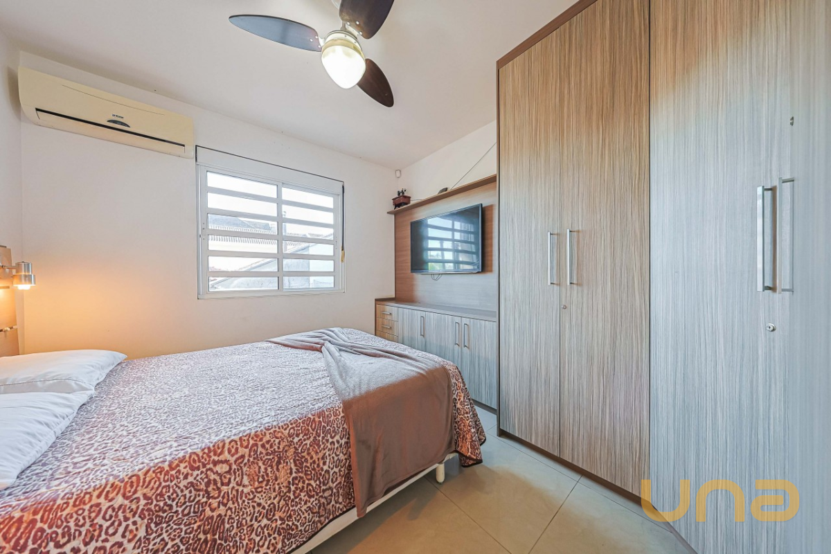 No segundo piso, são 03 dormitórios, todos com ar-condicionado e armários. A suíte master ainda dispõe de sacada com vista para a piscina. Banheiros (social e privativo) com armários, box de vidro e aquecimento a gás. Já no ático, há uma aconchegante sala de estar e um escritório — perfeito para home office ou momentos de leitura.