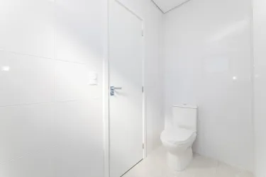 - Área social integrada com lavabo, sala de estar e jantar com cozinha em conceito aberto com ilha;