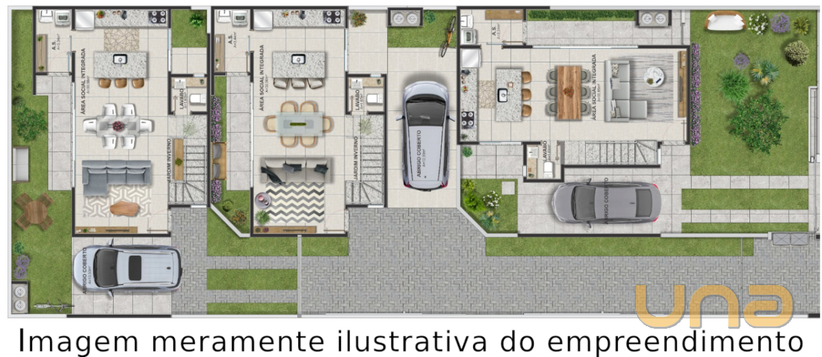 - Área de serviço com acesso a área externa privativa, com 1 vaga de garagem coberta com jardim ou adaptando o espaço para o 2° carro;
