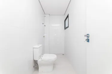 - Área social integrada com lavabo, sala de estar e jantar com cozinha em conceito aberto com ilha;