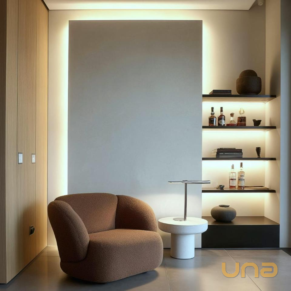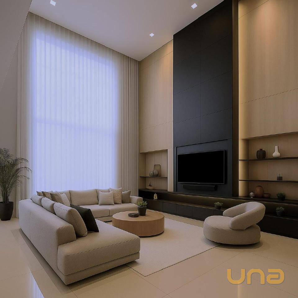 * Sala de estar e jantar em conceito aberto, com pé-direito duplo e excelente iluminação natural