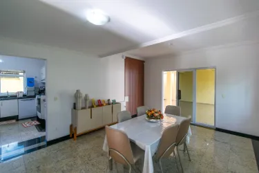 Logo na entrada, a sala de estar chama atenção pelo espaço, se tornando ideal para receber visitas ou relaxar. A sala de jantar, igualmente ampla, se integra de forma fluida à dinâmica da casa, criando um ambiente perfeito para momentos em família.