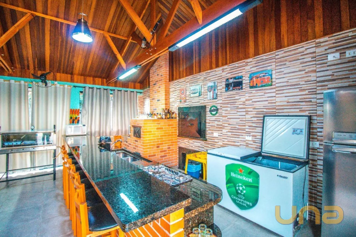 E além de tudo isso, conta com duas áreas que vão ganhar seu coração! Ao lado do tanque grande com diversos peixes, você encontra o salão de festas de verão! Aberto e em forma de octógono, com 100 m², tem churrasqueira, forno para pizza, fogão a lenha com forno, banheiro completo e depósito.