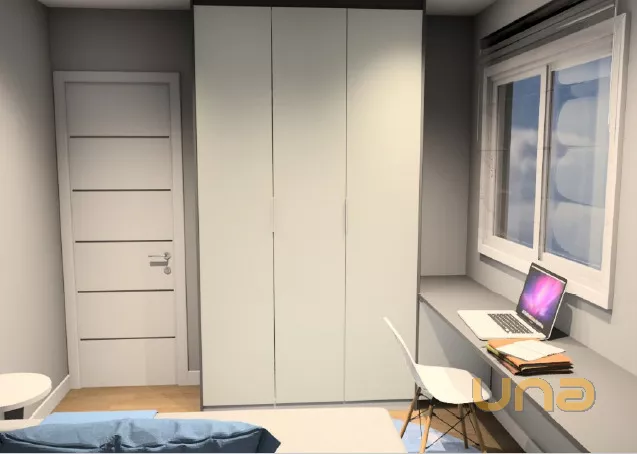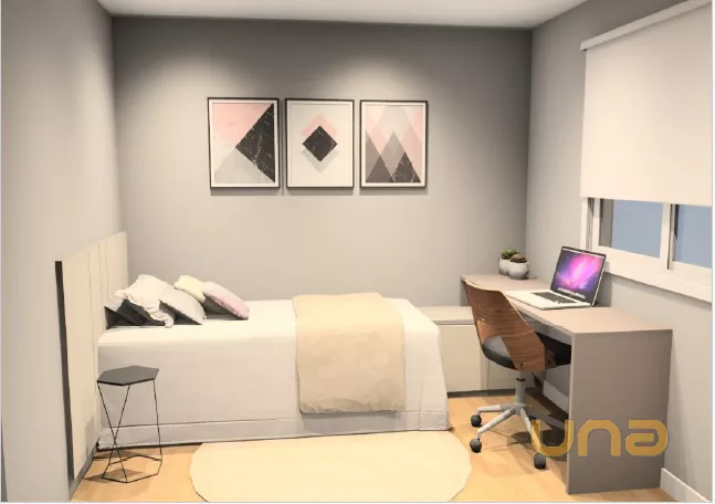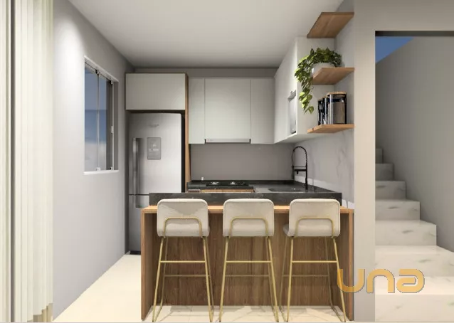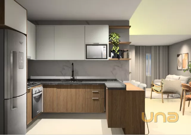 O espaço esta sendo mobiliado com sofá, mesa, cadeiras, banquetas, poltrona, geladeira, exaustor, cooktop, forno elétrico e micro-ondas — além das imagens de projeto que mostram todo o potencial do ambiente.