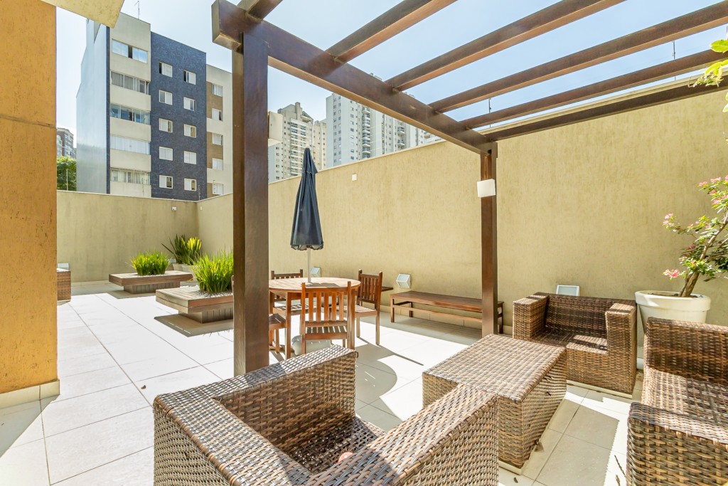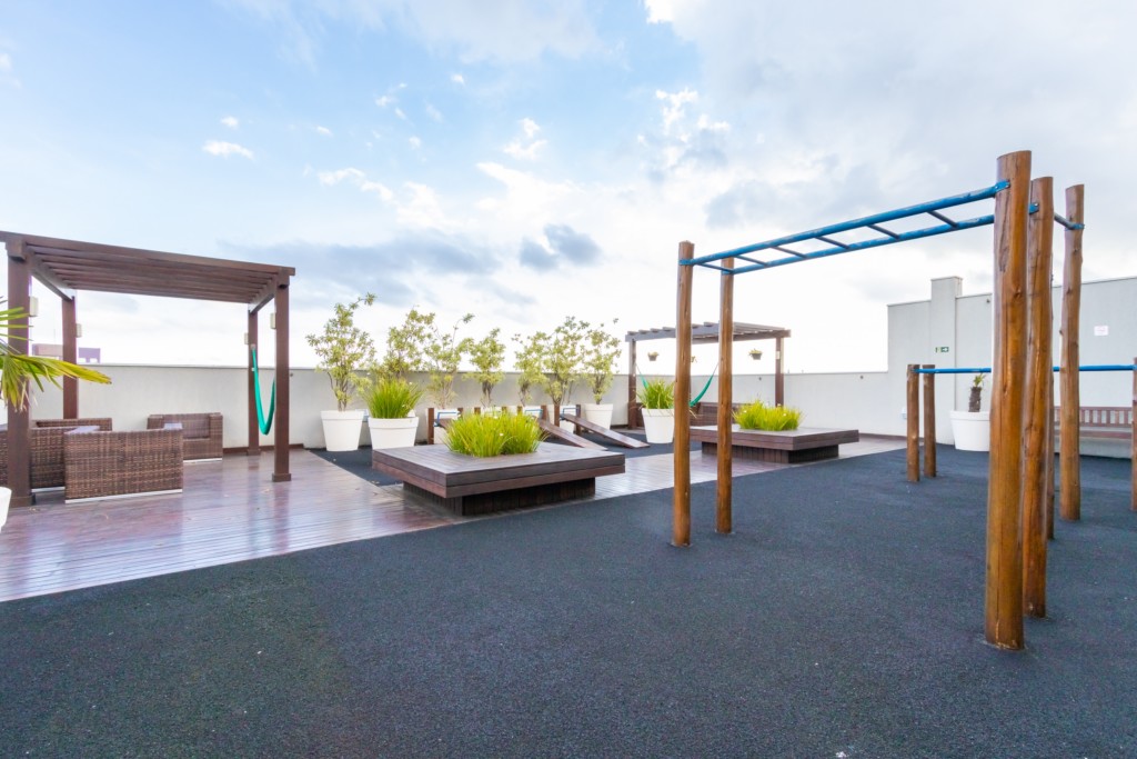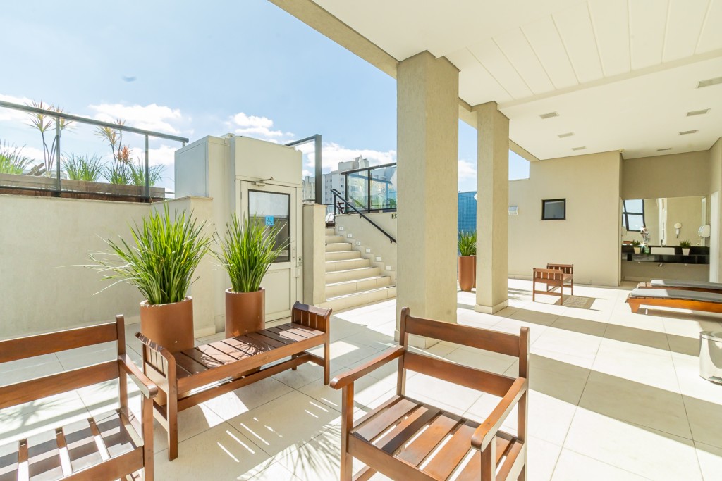 O condomínio Moving oferece: Portaria 24 horas, bicicletário, lavanderia, salão gourmet, salão de festas, salão de estar, academia interna e externa, coworking, deck coberto e piscina.
