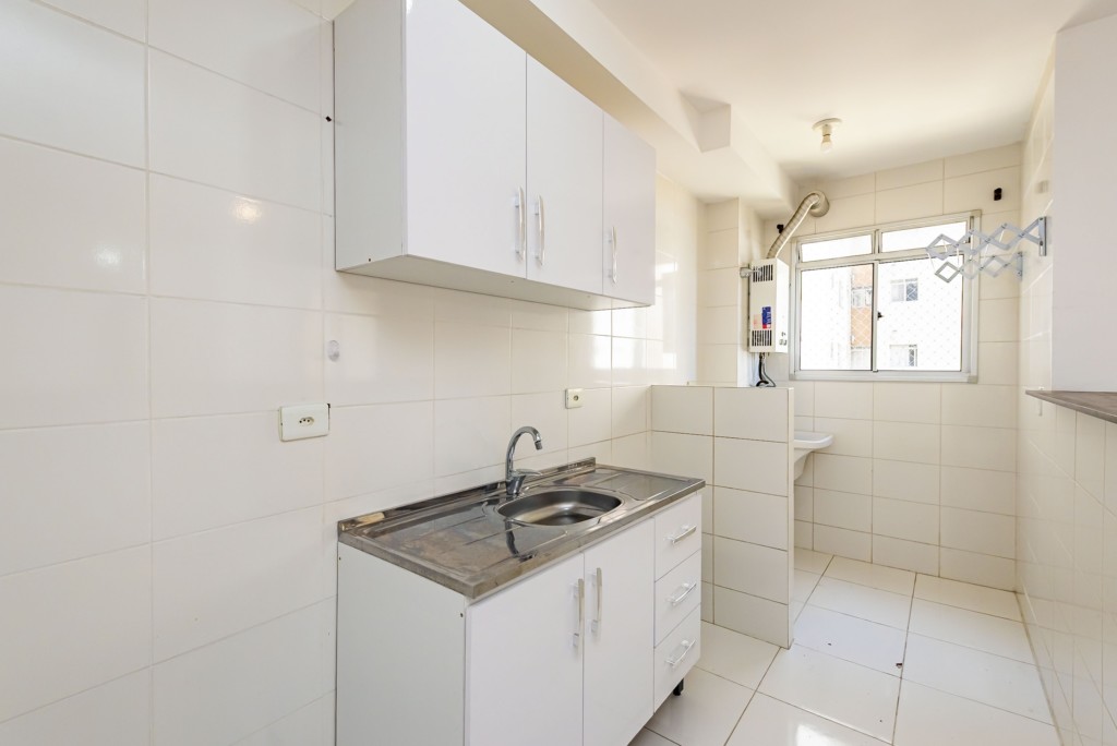 * Cozinha com pia de tampo em granito, armários planejados, conjugada com área de serviço,