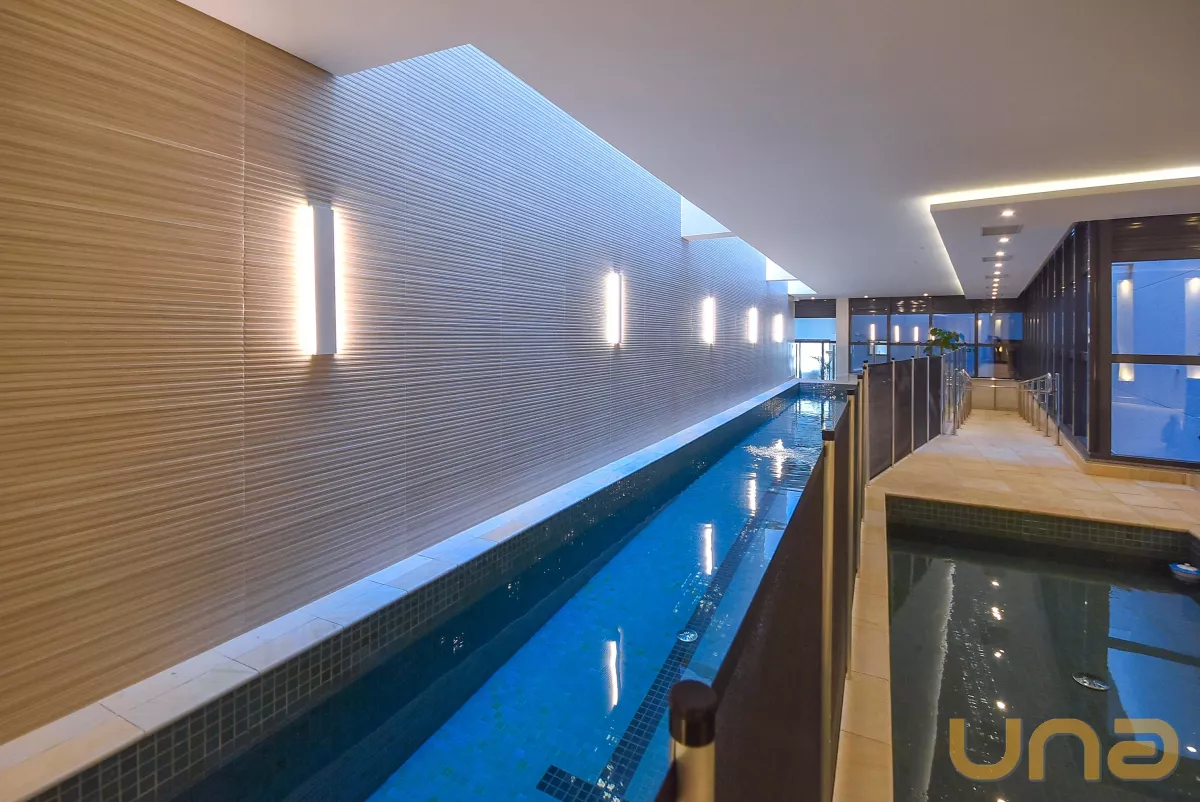 A cozinha é planejada, equipada com móveis e eletrodomésticos, o que garante praticidade desde o primeiro dia. Nos quartos você tem piso laminado, armários bem distribuídos e venezianas automatizadas que elevam o conforto, assim como a infraestrutura pronta para ar-condicionado na sala e nos dormitórios.