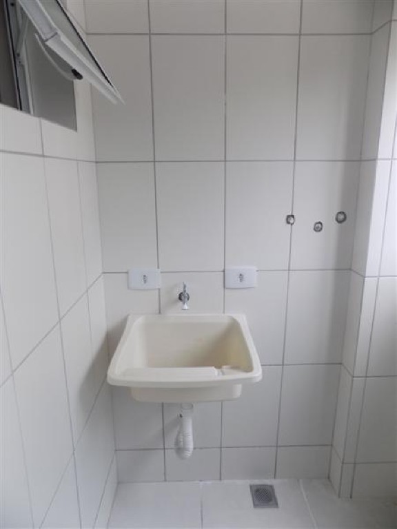 * Área de serviço conjugada com a cozinha, com porta de vidro para separar os ambientes
