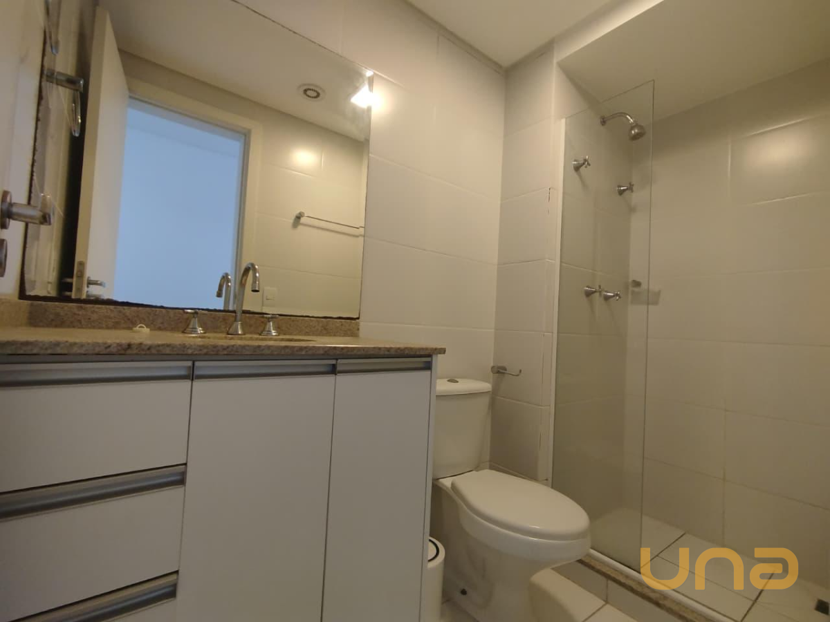 * Bwc social e suíte com pia em granito, armários, espelho e box em vidro
