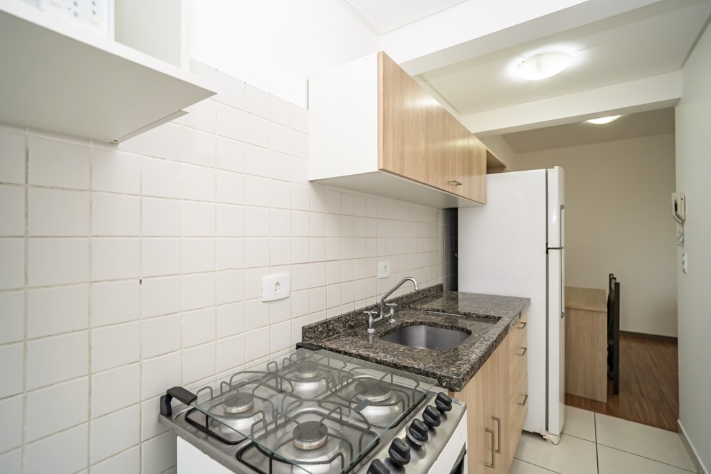 * 01 cozinha, com armários planejados, também inclui geladeira, microondas e fogão, sendo integrada à área de serviço.