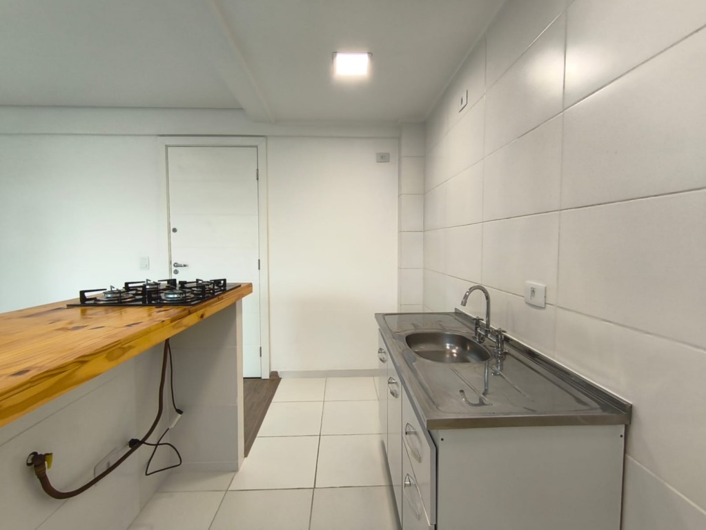 * Cozinha integrada à sala, iilha com um cooktop .