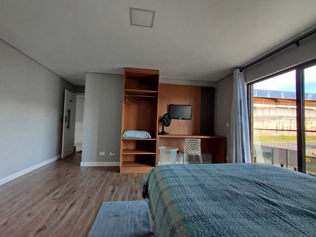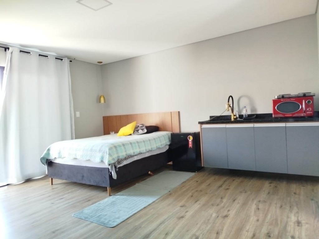 Com 25m², este studio mobiliado apresenta um fino acabamento, com atenção especial aos detalhes, com microondas , fogão elétrico 2 bocas , cama casal colchão box, frigobar , demais móveis Planejados .