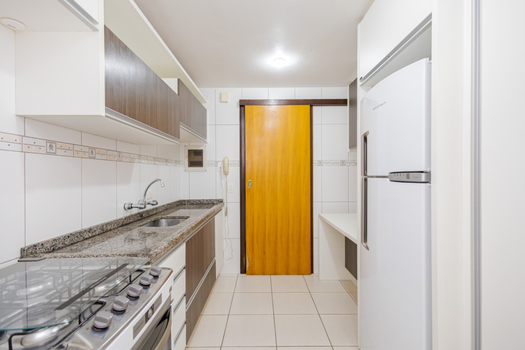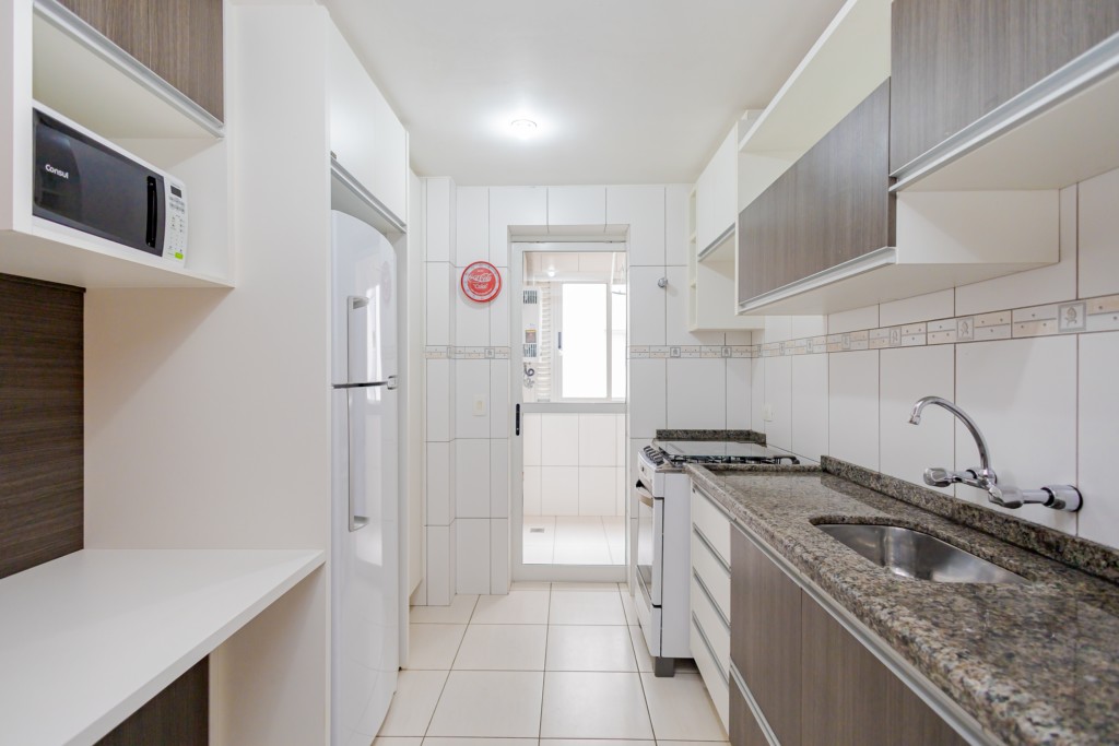 - Cozinha planejada, equipada com fogão, geladeira e forno de micro-ondas, proporcionando praticidade e funcionalidade no seu dia a dia.