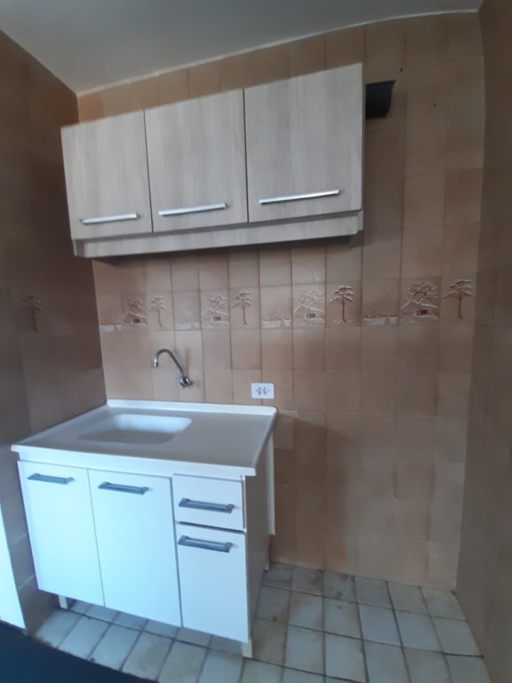 Sala-Dormitório conjugado com a cozinha, que comporta armário suspenso e pia,