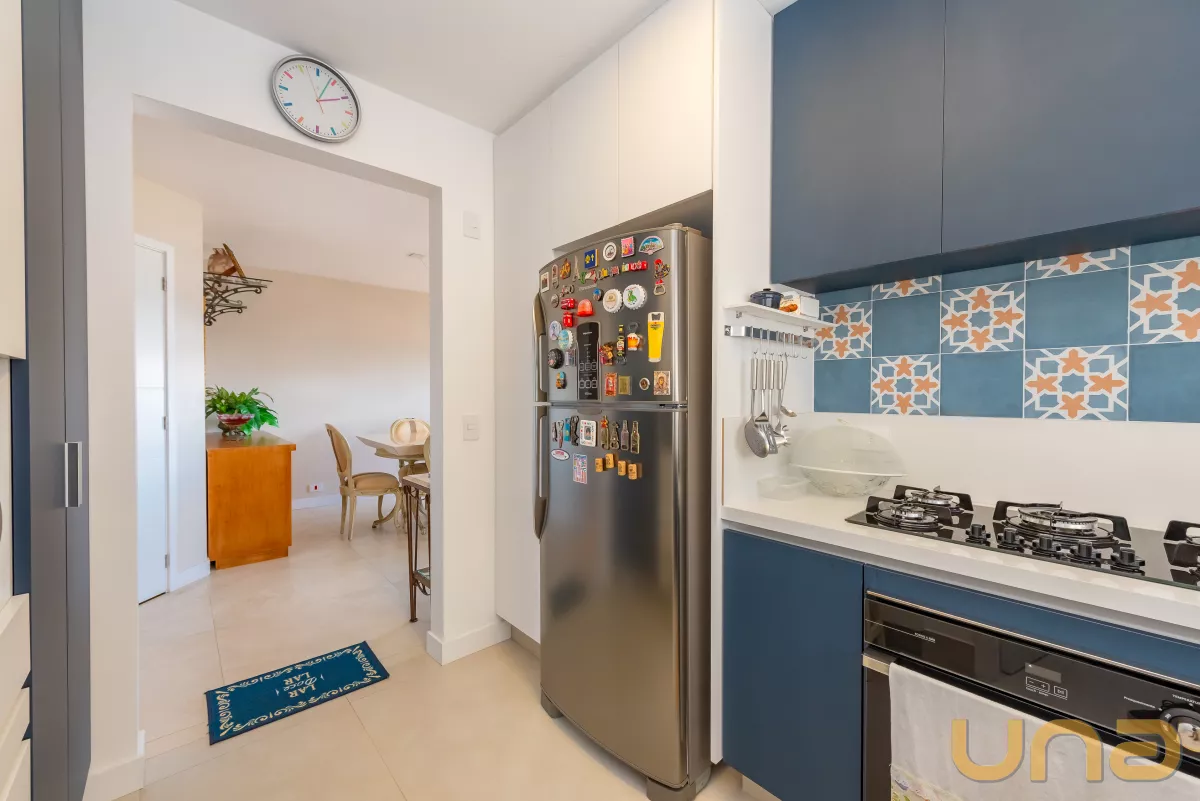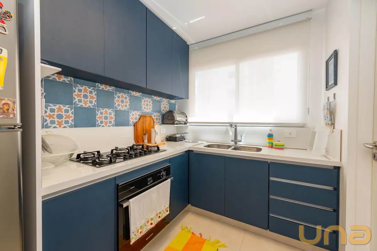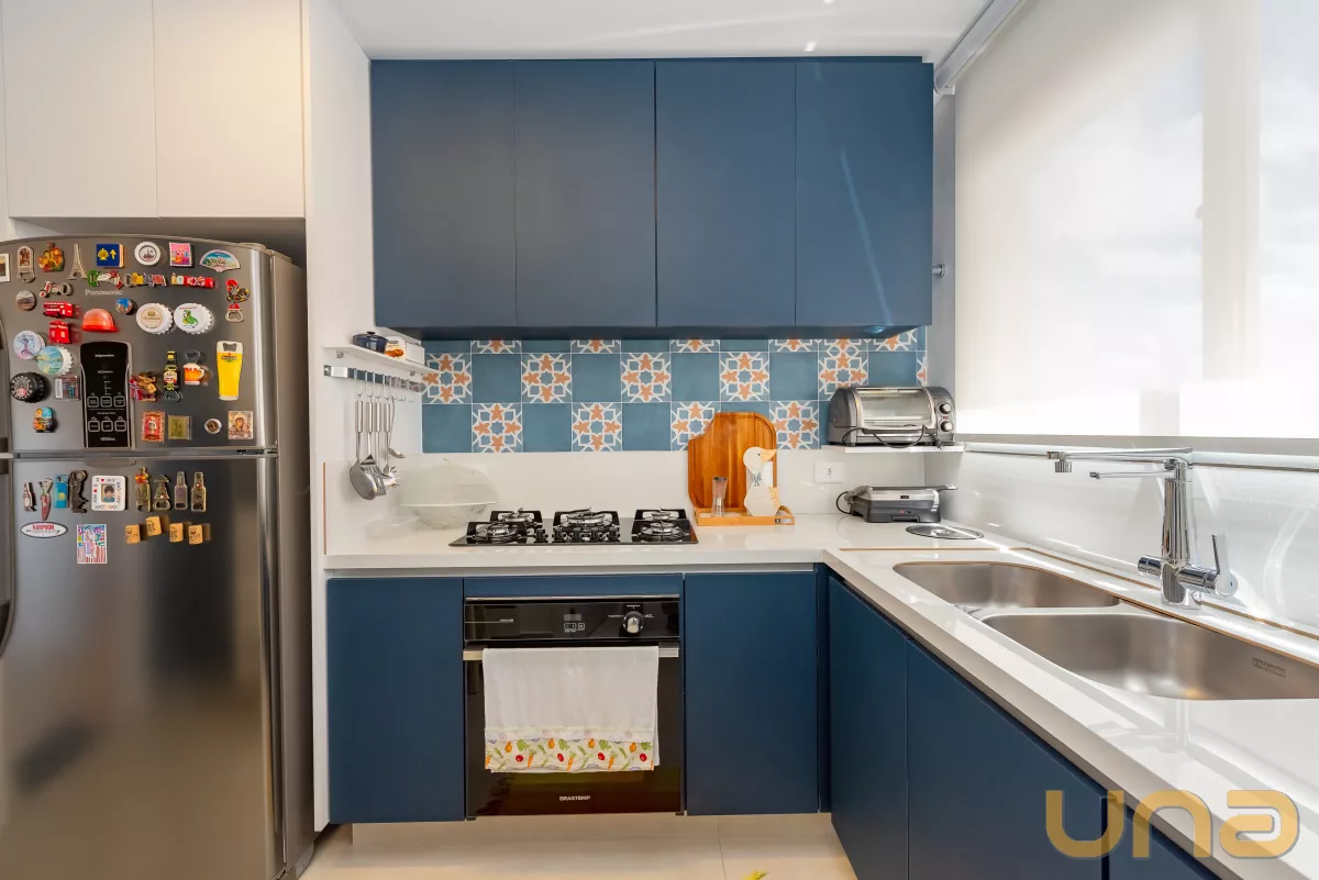 Cozinha moderna e funcional, toda mobiliada e área de serviço separada com banheiro de serviço;