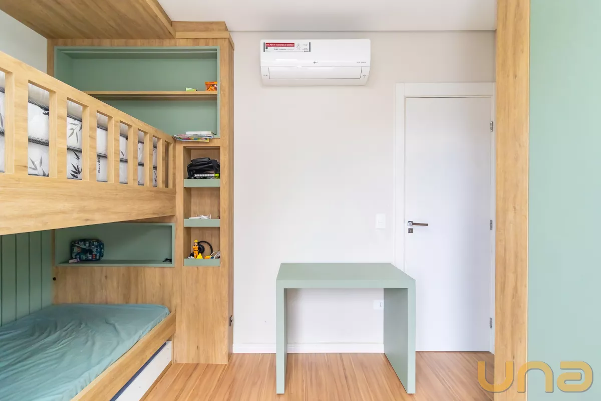Todos os móveis planejados, ar condicionado nos dormitórios e na sala, forno elétrico, cooktop e micro-ondas, estão incluídos.