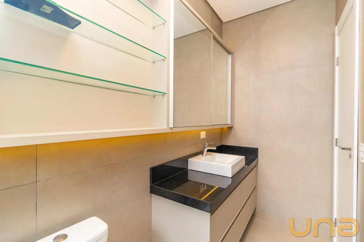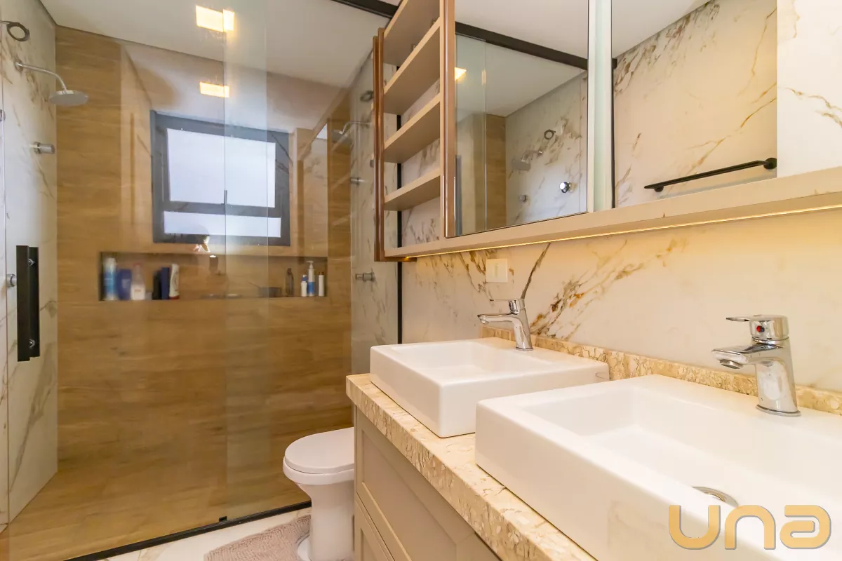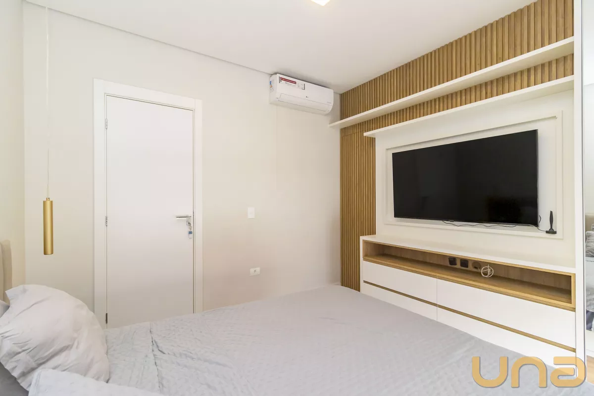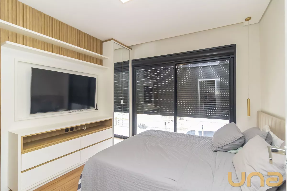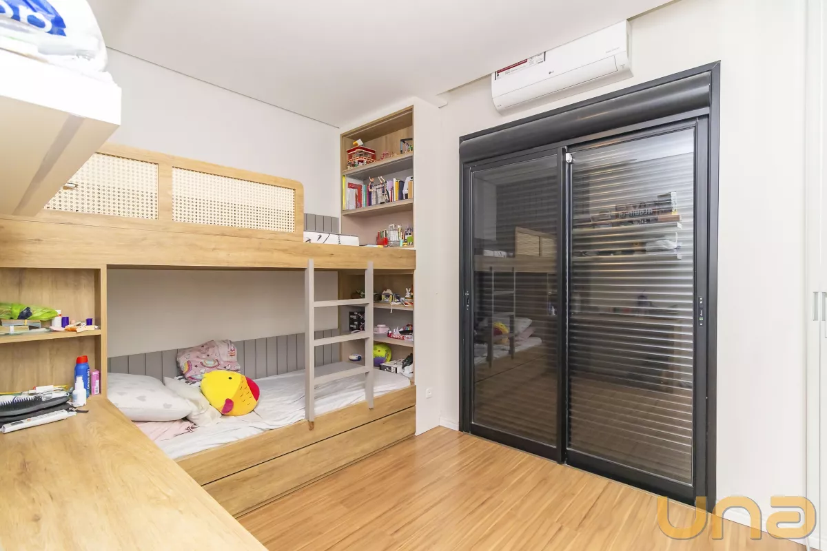 02 amplos dormitórios com armários planejados, ar condicionado e venezianas automatizadas;