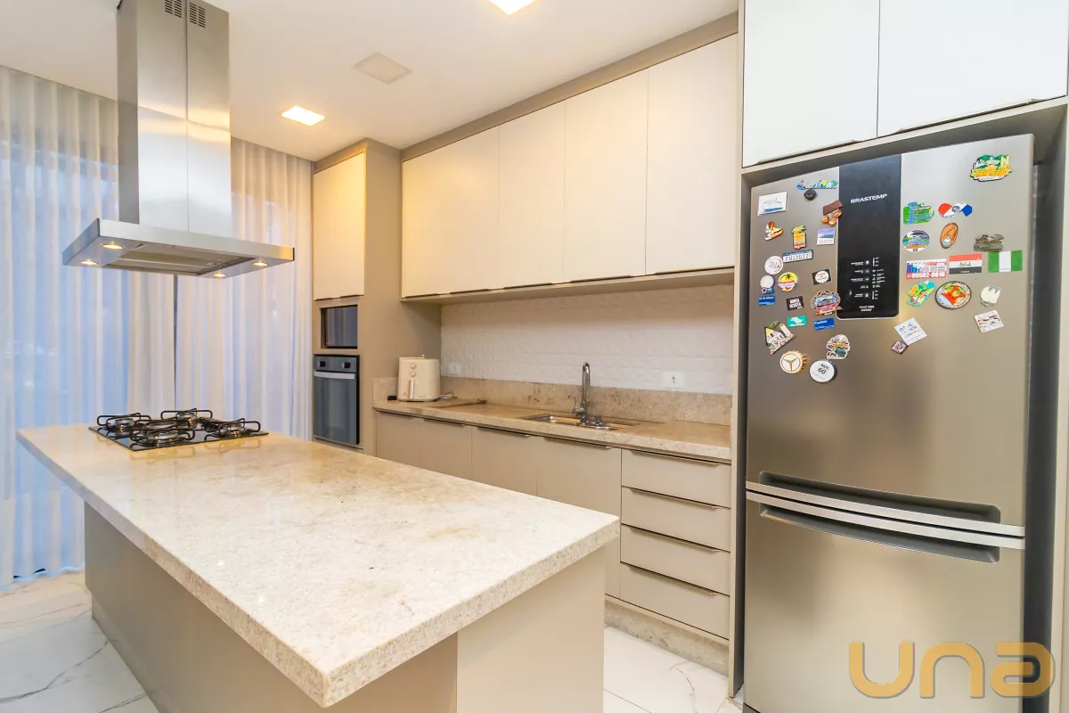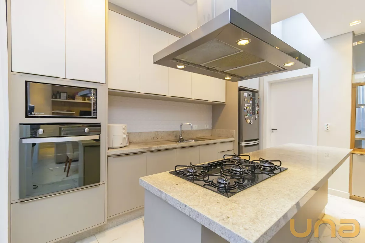 Cozinha em conceito aberto, moderna e funcional, com uma ilha ideal para os amantes da culinária, trazendo uma integração perfeita com a área social.