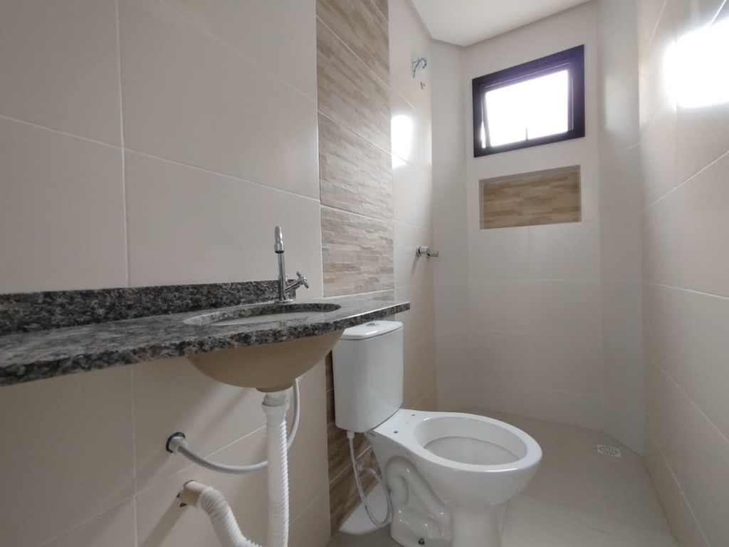 * Banheiro social com box em vidro temperado ( armário com projeto)