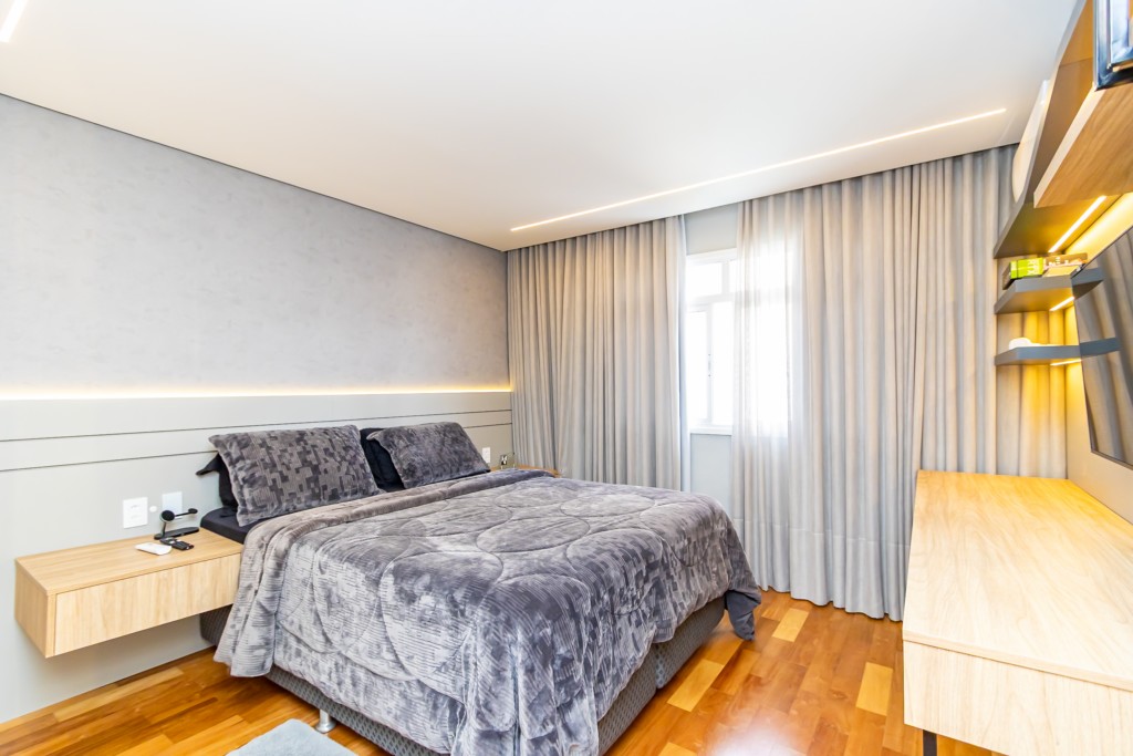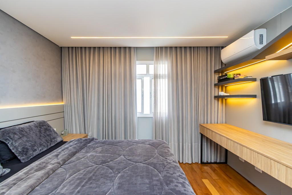 * Suíte 2 com armários, cabeceira com mesas laterais e escrivaninha