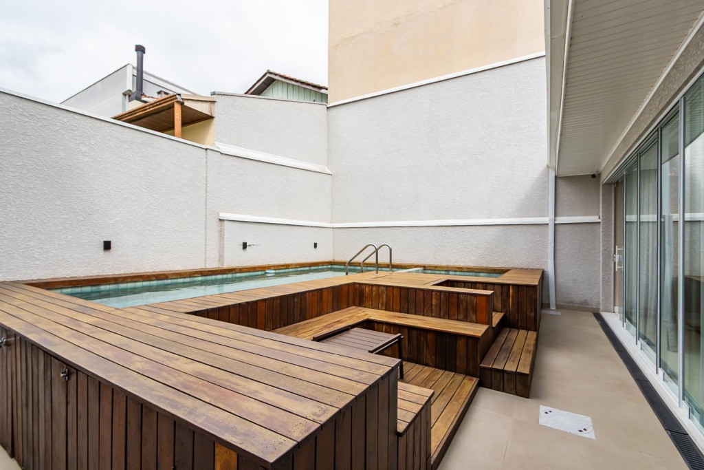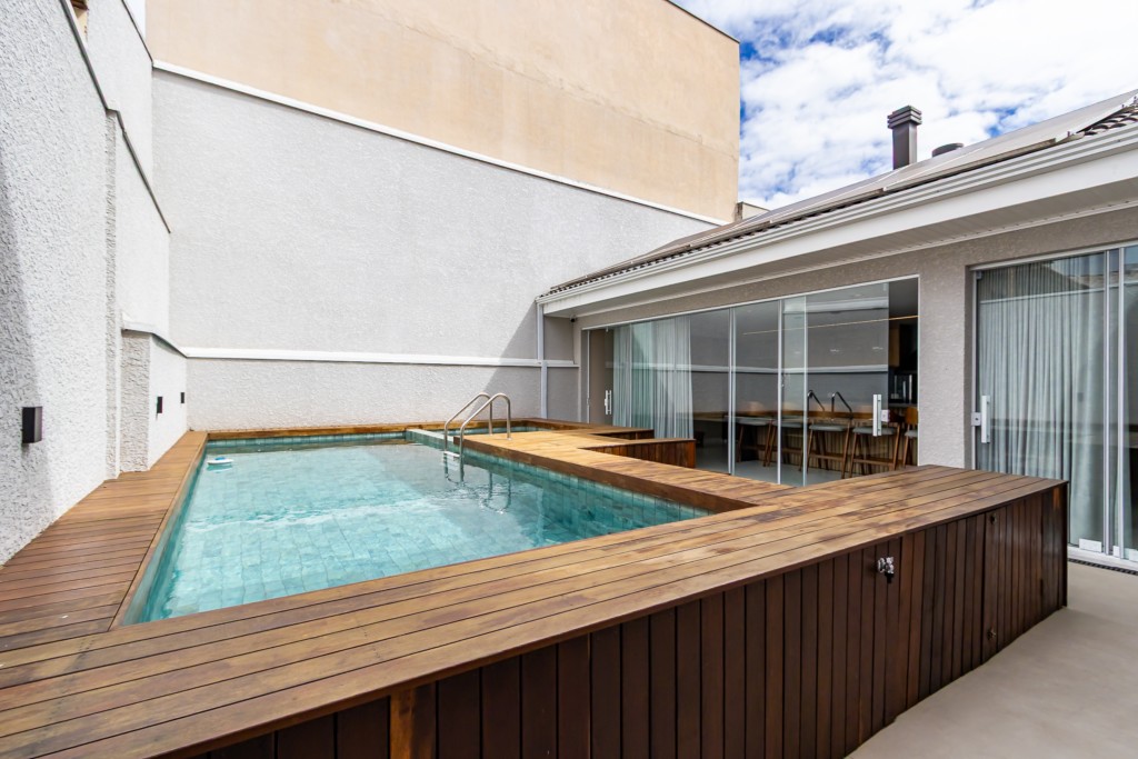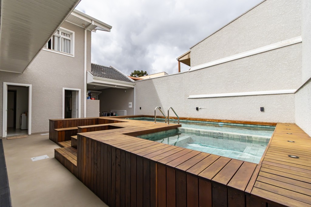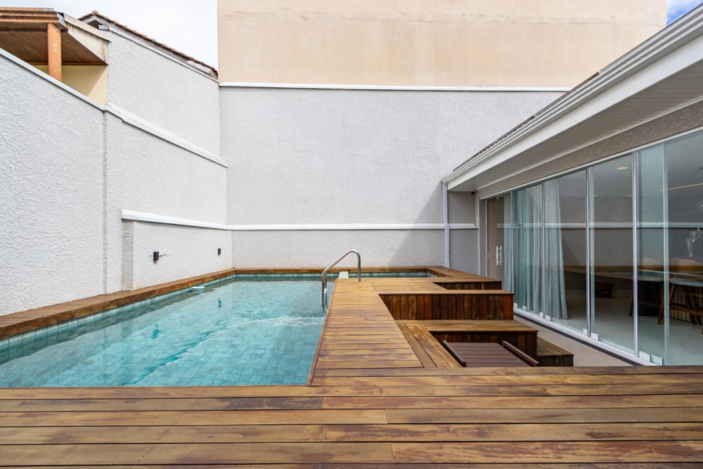 * Piscina com jacuzzi aquecida e deck em madeira