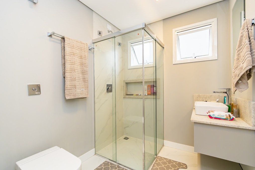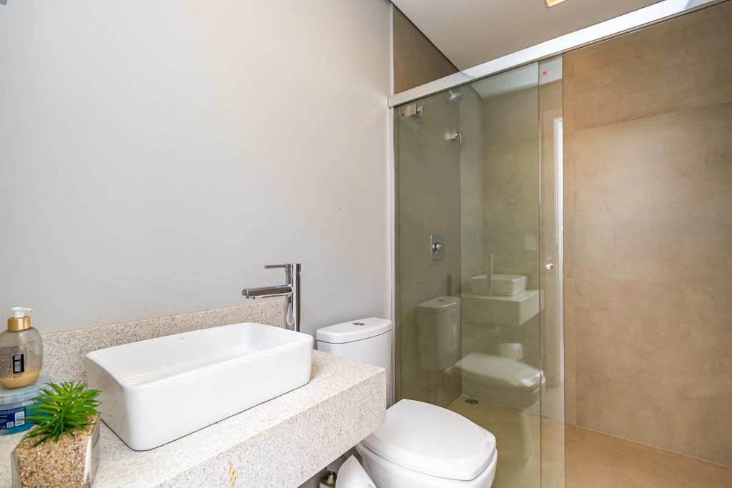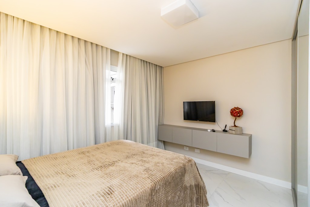 Possui acabamentos de alto padrão, energia solar com mais de 20 placas, ar-condicionado instalado, sistema de câmeras, porteiro inteligente com acionamento remoto pelo celular, cerca elétrica e aquecimento a gás.