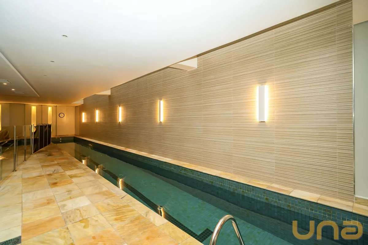 Fitness, brinquedoteca, espaço gourmet, quadra esportiva, bicicletários, salão de festas, salão de jogos, piscina de 2 raias com ambiente climatizado, play e piscina infantil.