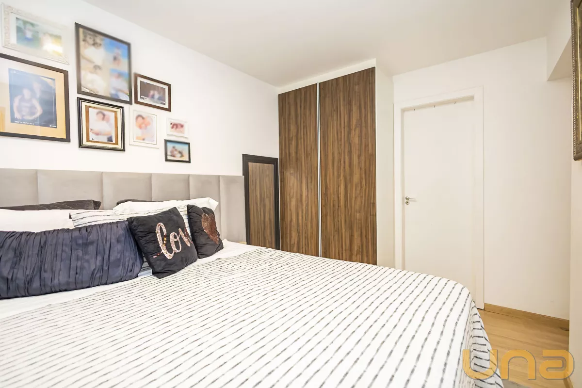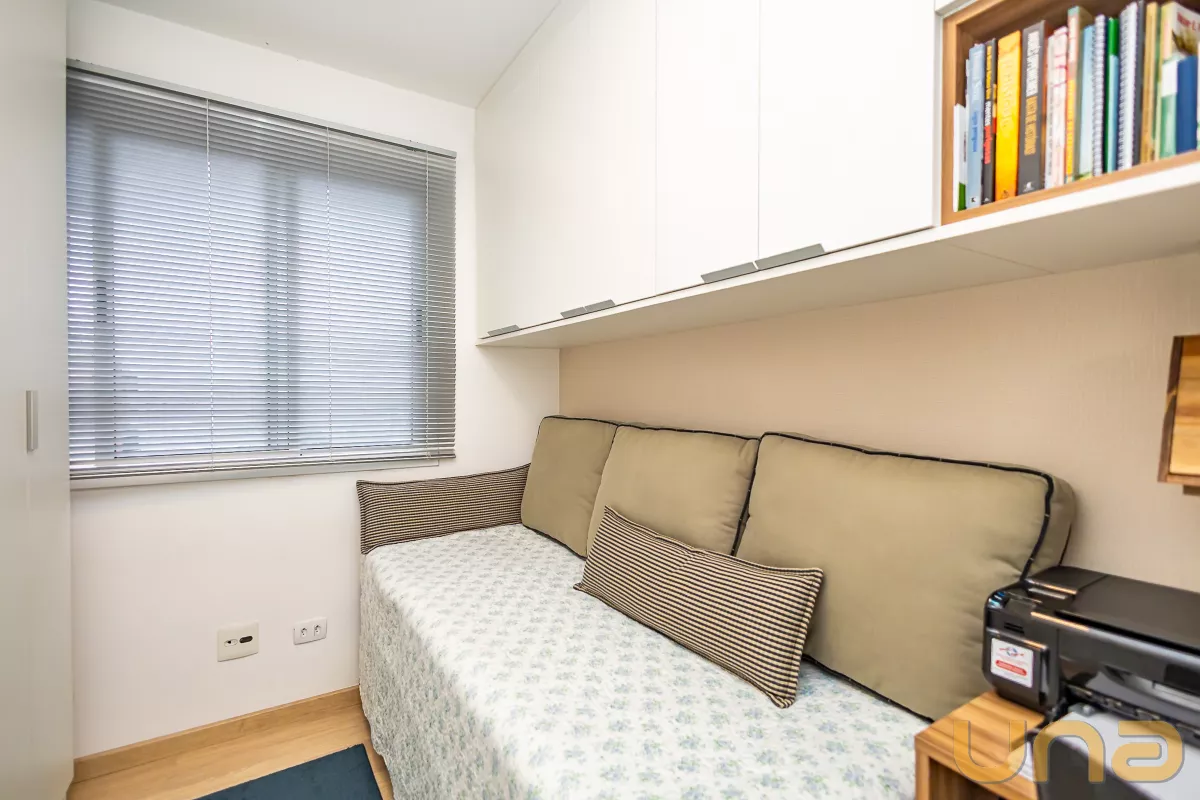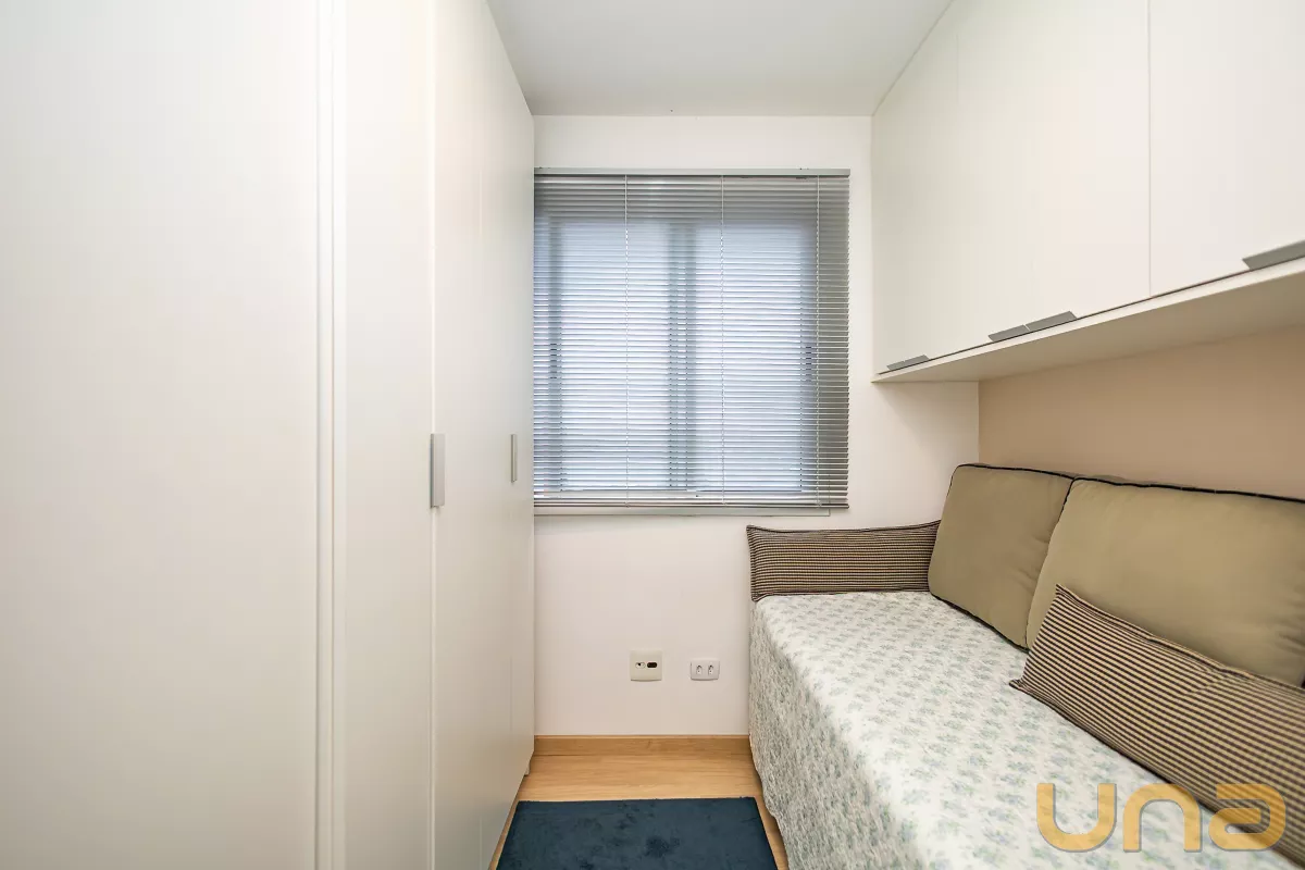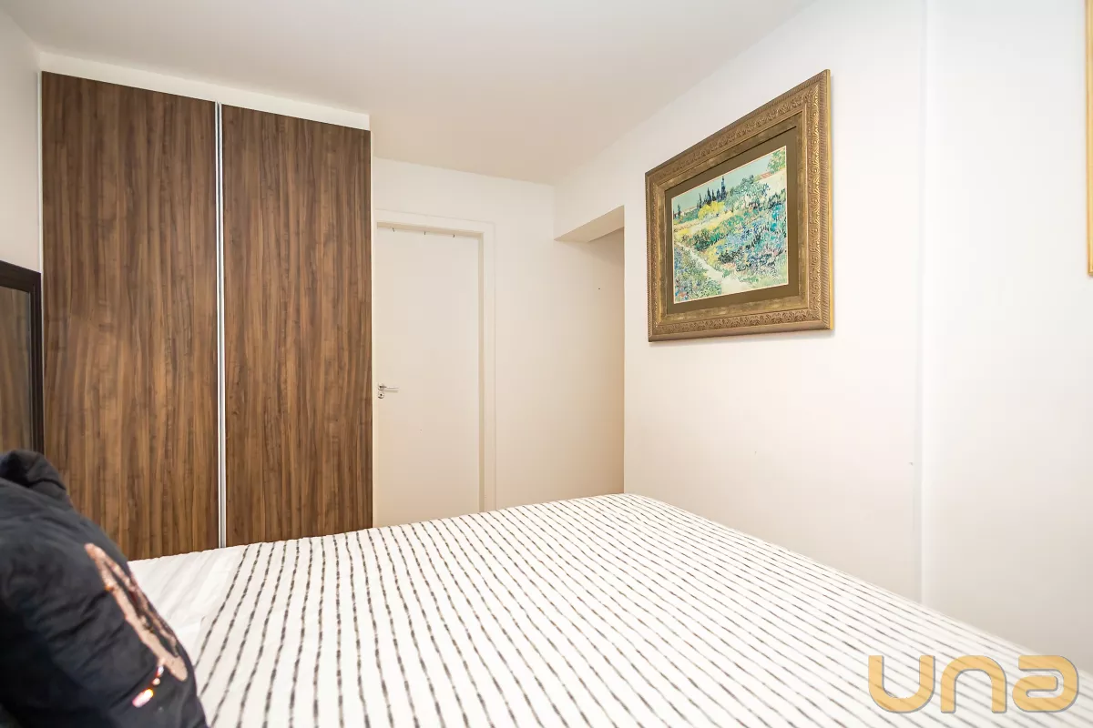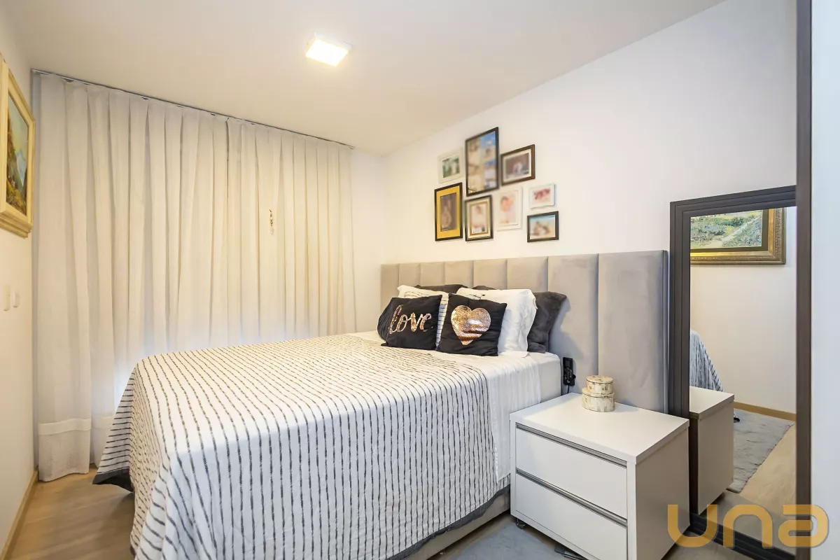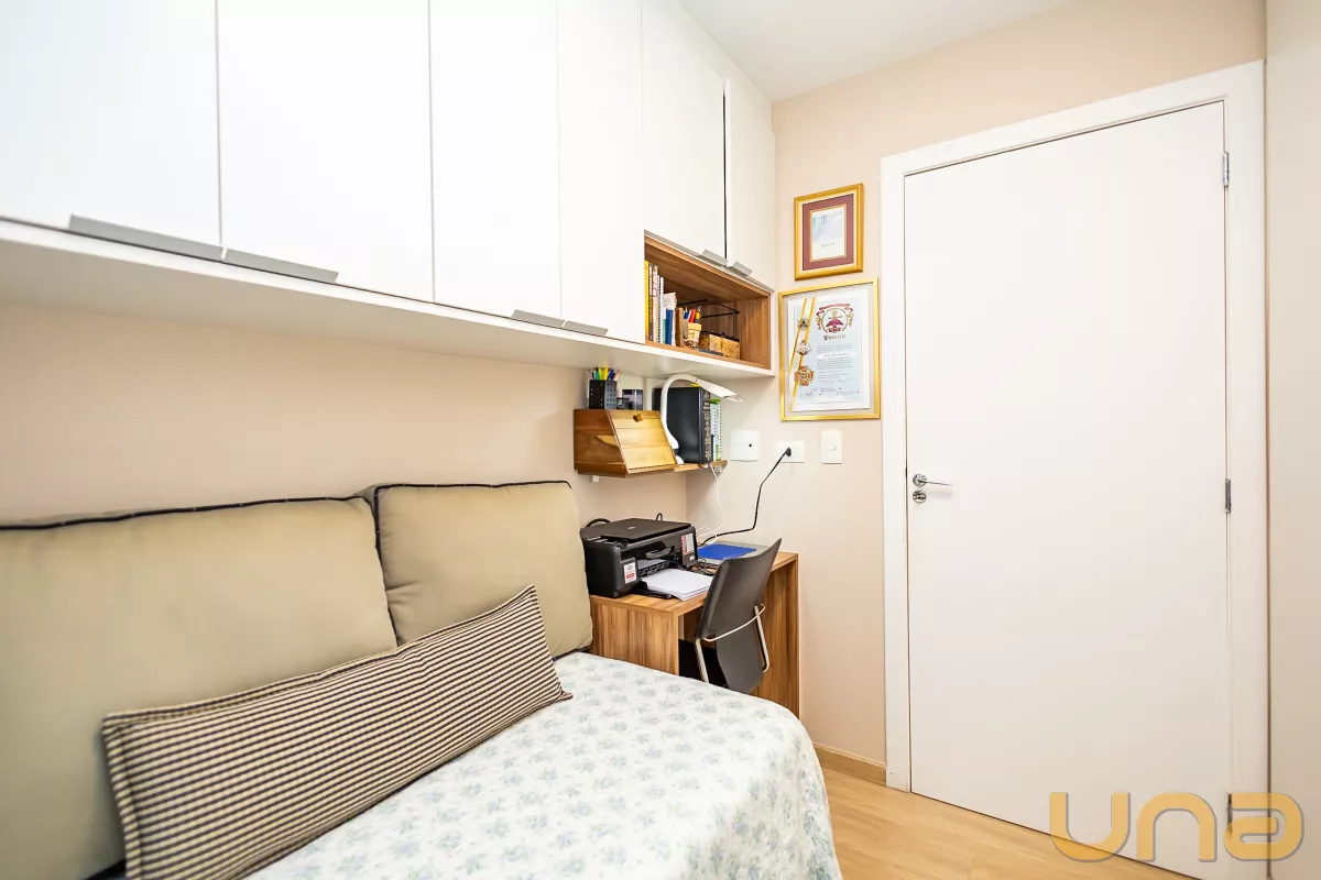 2 quartos com armários planejados, sendo 1 suíte elegante e confortável.