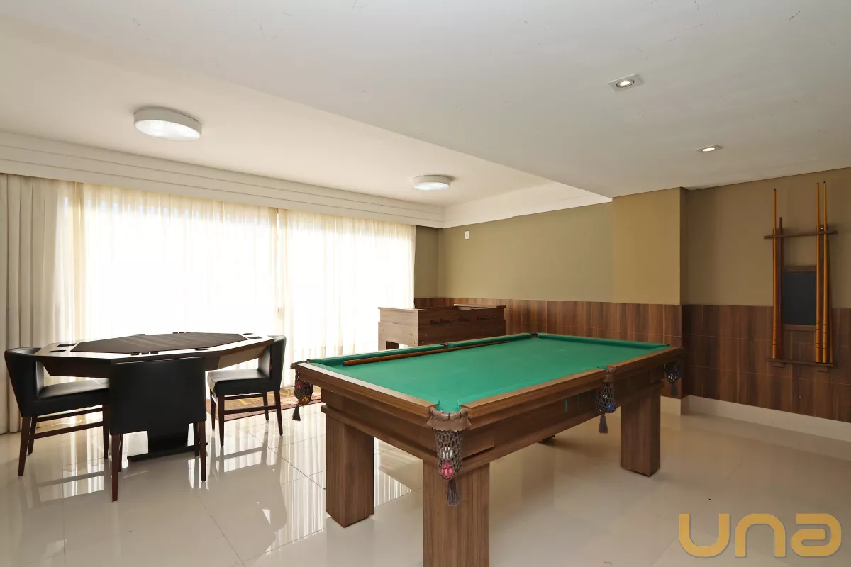 Salão de festas, salão gourmet e salão de jogos.