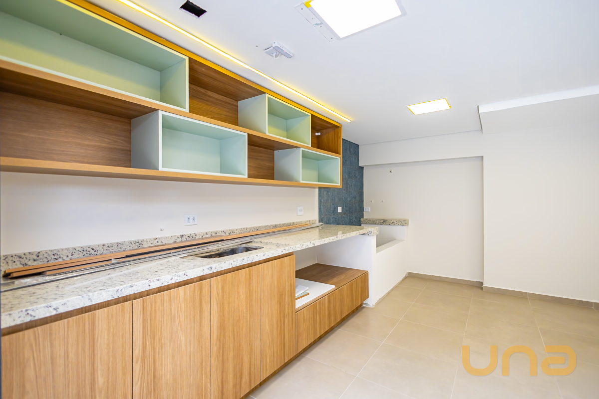- Sala e cozinha integradas em conceito aberto