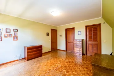 Os espaços internos são bem iluminados e ventilados, proporcionando conforto no dia a dia. A casa conta com lareira na sala de estar e também na sala íntima, criando um ambiente acolhedor e charmoso, especialmente nos dias mais frios de Curitiba.
